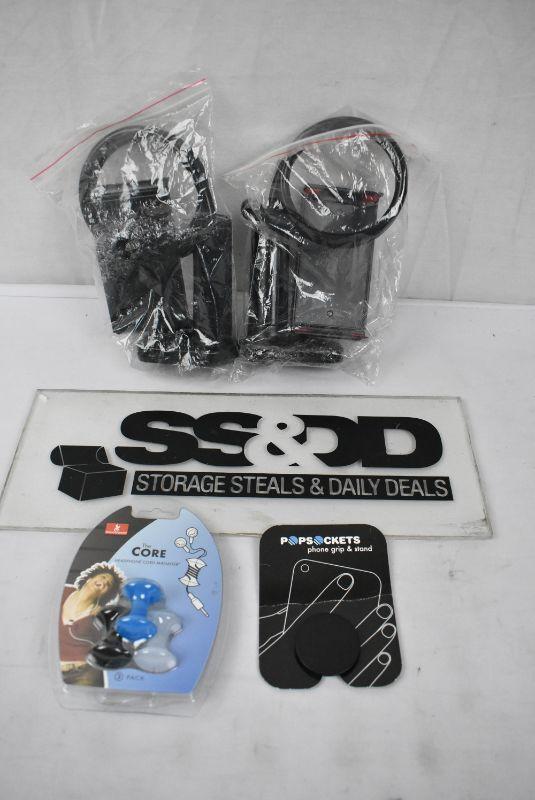 4 pc Phone/Electronics Accessories: mounts, cord managers, popsocket - New