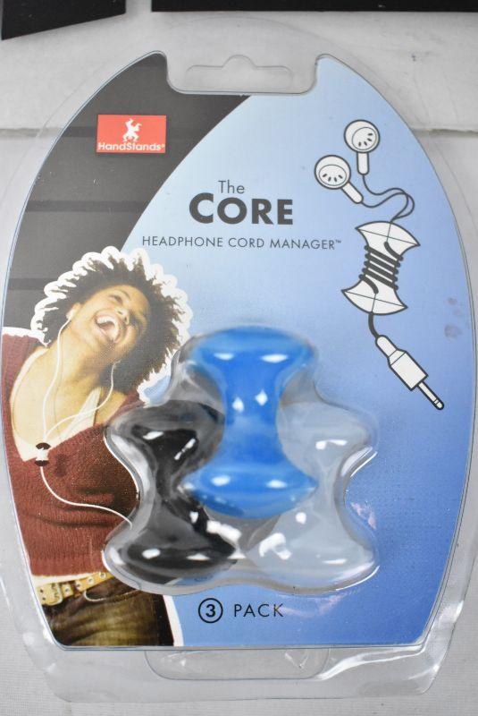 4 pc Phone/Electronics Accessories: 2 phone mounts, pack of 3 headphone cord managers, 1 black popsocket - New