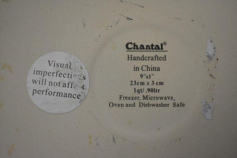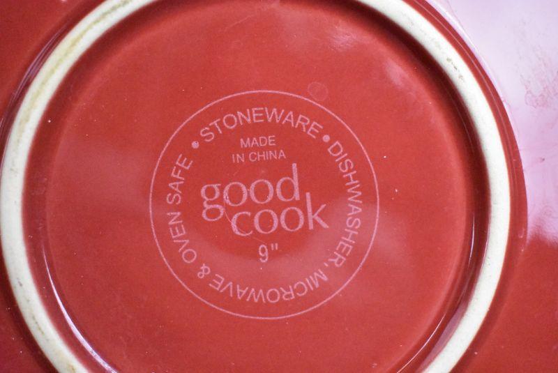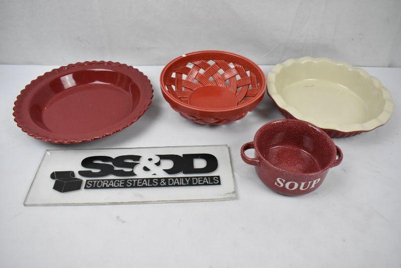 4 pc Red Kitchen Stoneware: 2 pie plates, 1 soup bowl, 1 basket bowl