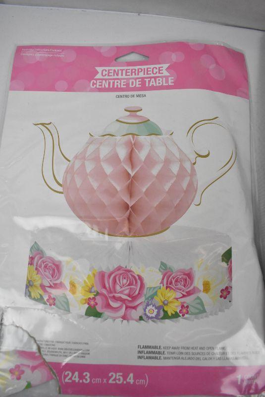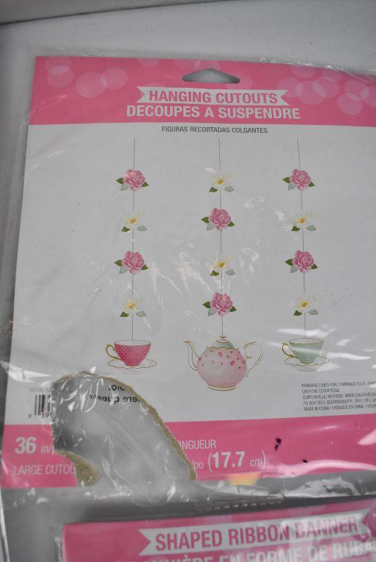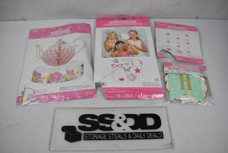 4 pc Tea Party Decor: Floral Tea Party Birthday Decorations Kit. Damaged Packaging - New