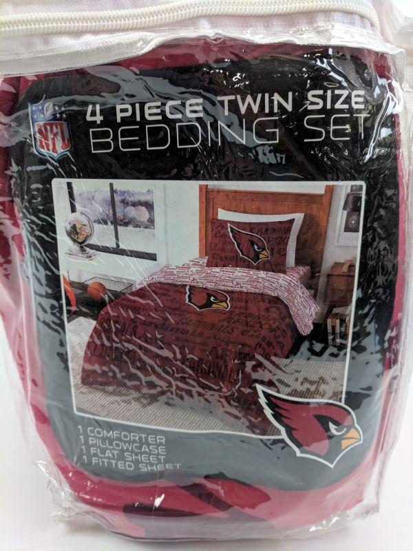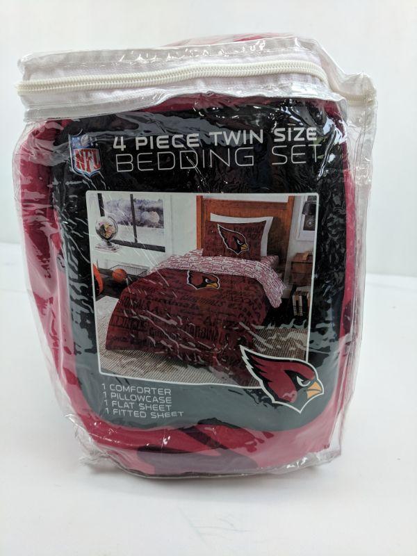 4 PC Twin Size Bedding, NFL Cardinals, Comforter/Pillowcase/Sheet Set - New