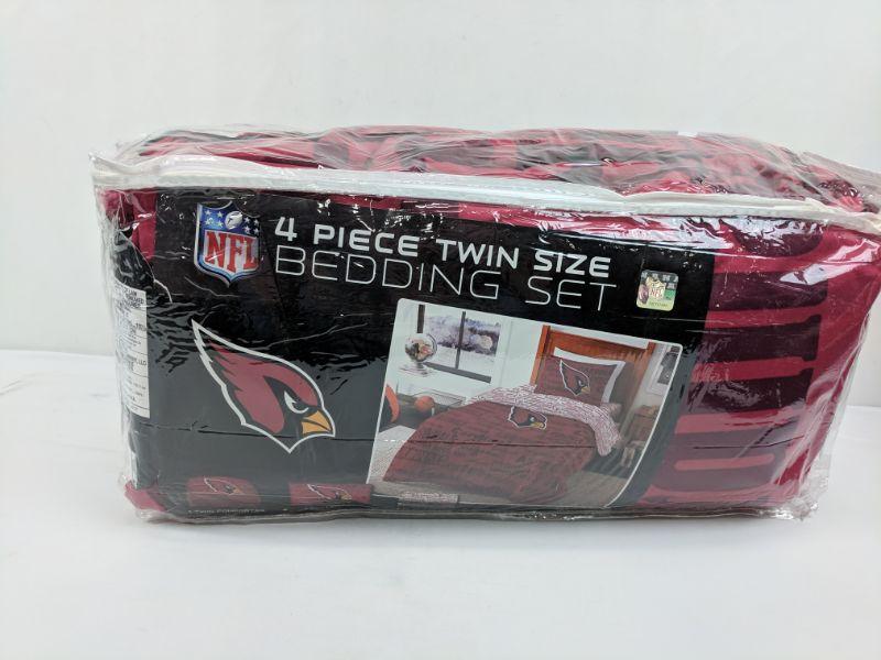 4 PC Twin Size Bedding, NFL Cardinals, 1 Comforter/1 Pillowcase/1 Sheet Set - New
