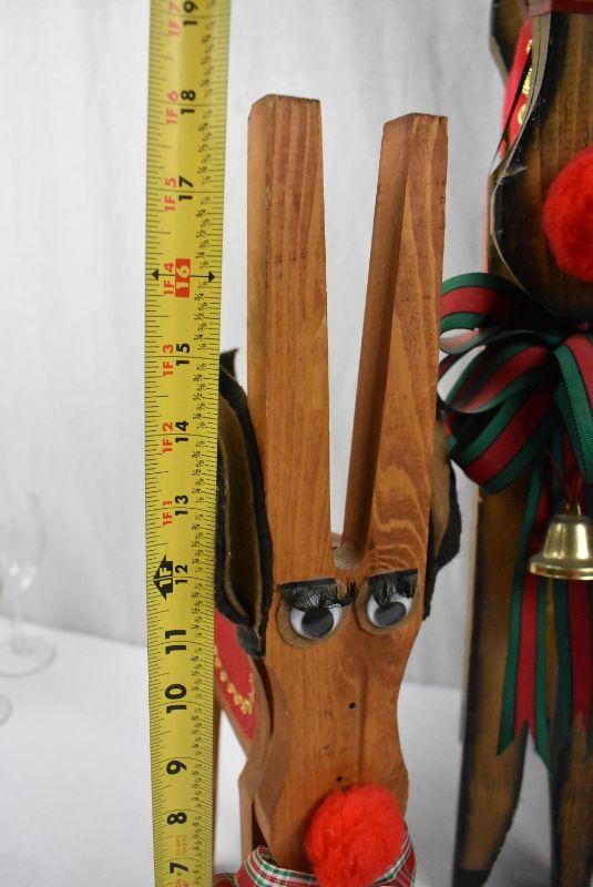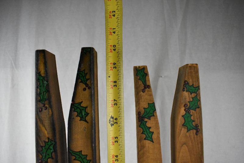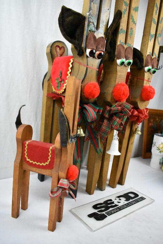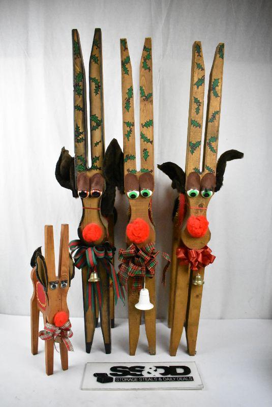 4 pc Wooden Reindeer Decor. 3 Large, 1 small. 1 missing ear
