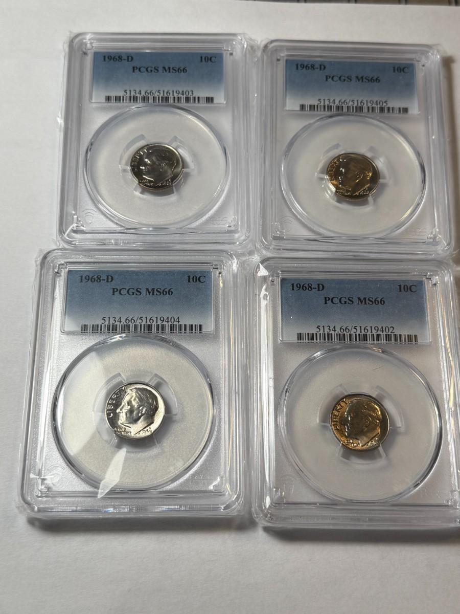(4) PCGS CERTIFIED 1968-D MS66 CHOICE CONDITION ROOSEVELT DIME LOT AS PICTURED. $5 DOMESTIC SHIPPING.