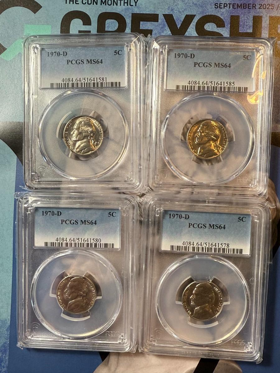 (4) PCGS CERTIFIED 1970-D MS64 JEFFERSON NICKEL COINS AS PICTURED. $5 DOMESTIC SHIPPING.