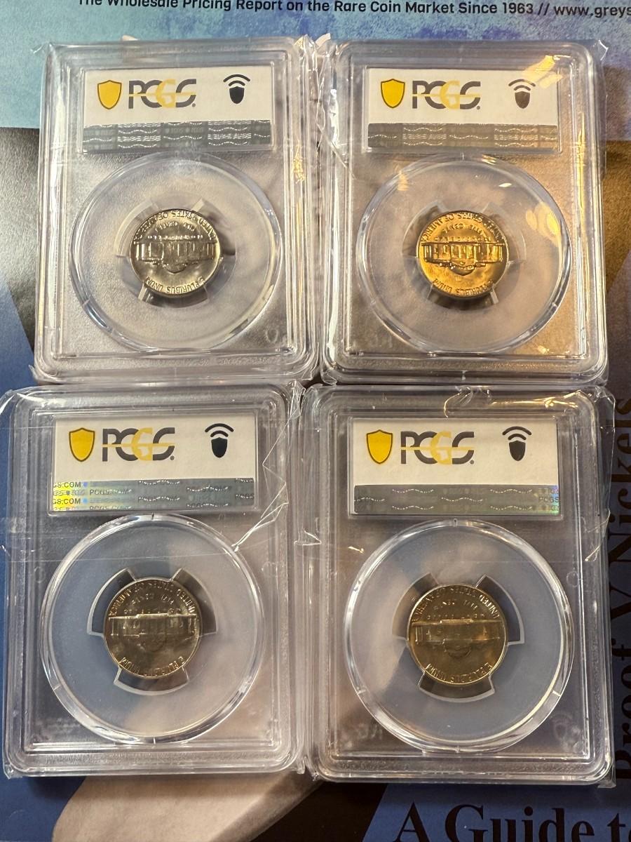 (4) PCGS CERTIFIED 1970-D MS65 JEFFERSON NICKEL COINS AS PICTURED. $5 DOMESTIC SHIPPING.