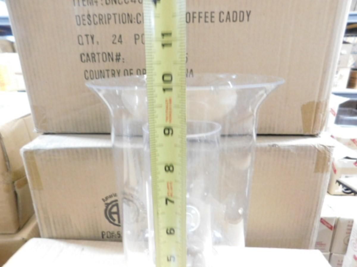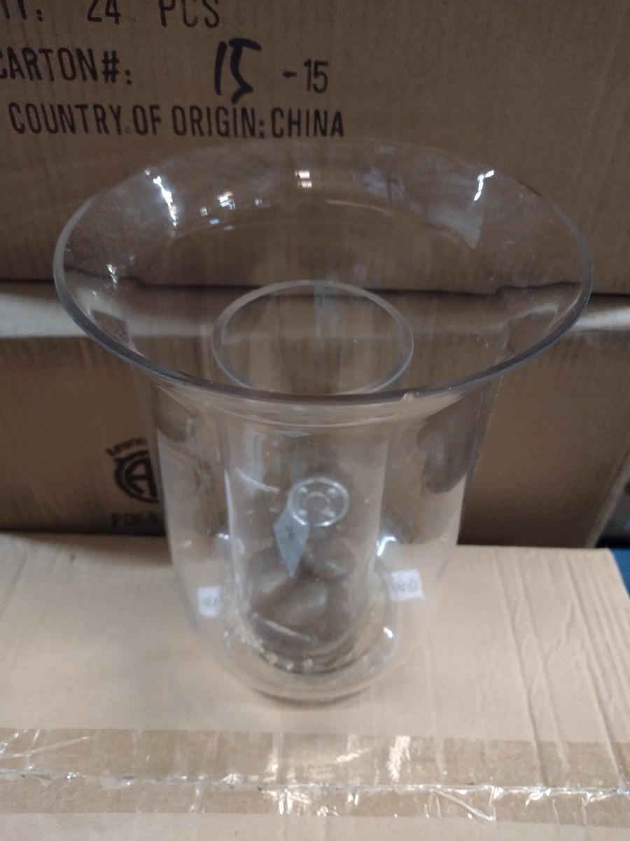 4 pcs Burton & Burton Double Lined Clear Glass Centerpiece Vase one vase has chip on the lip.
