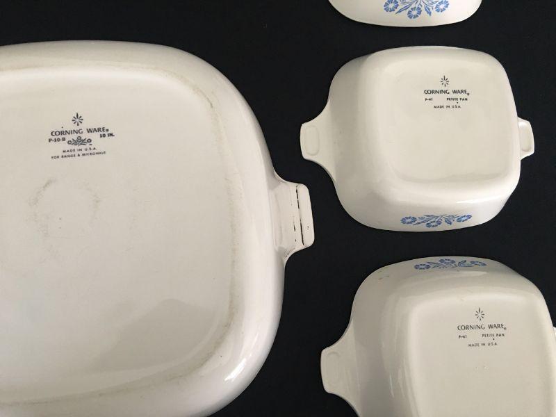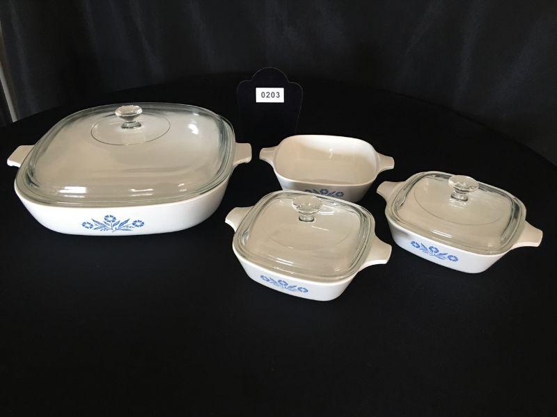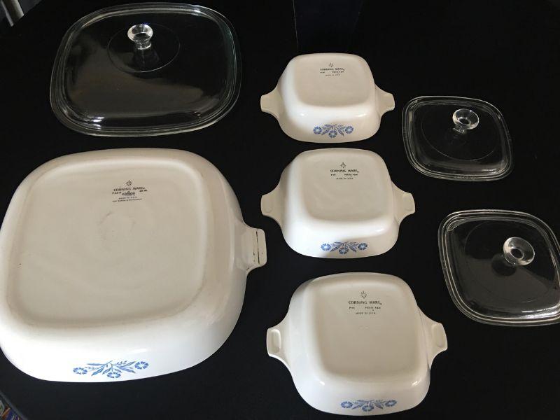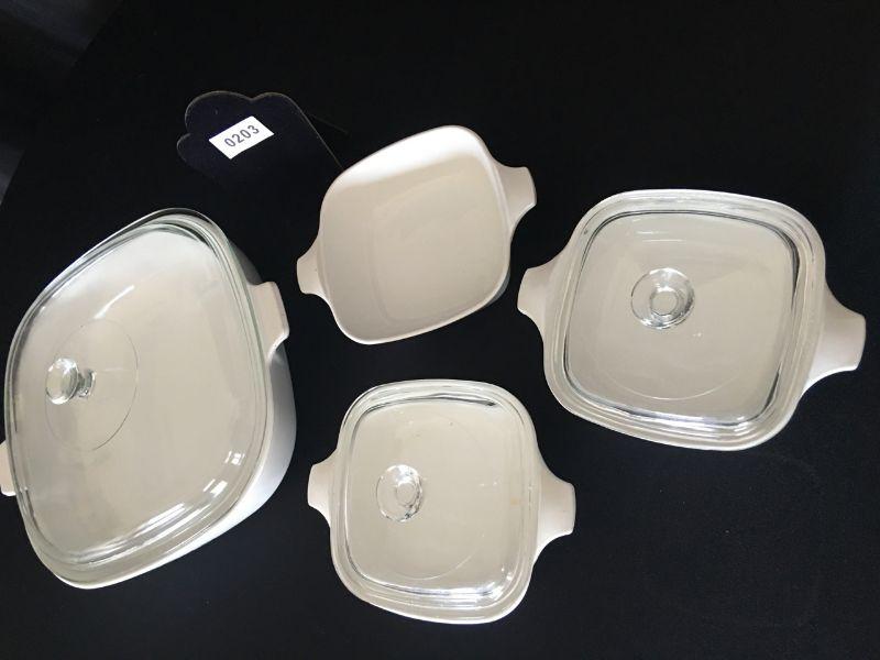 1 Large covered 10" dish, 3 small p-41 dishes, with one missing lid