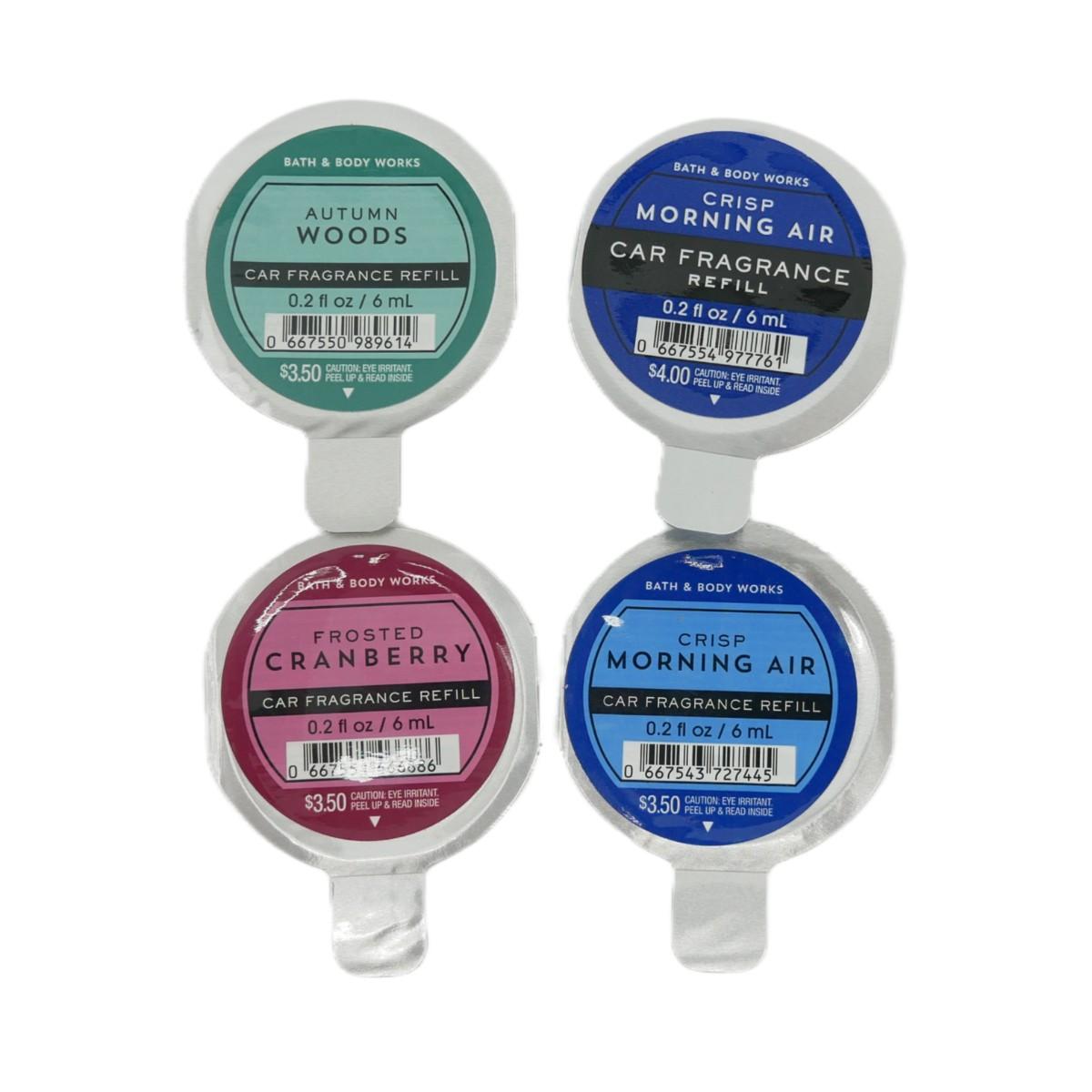 Two new Crisp Morning Air, one Frosted Cranberry, and one Autumn Woods Bath & Body Works car fragrance refills.