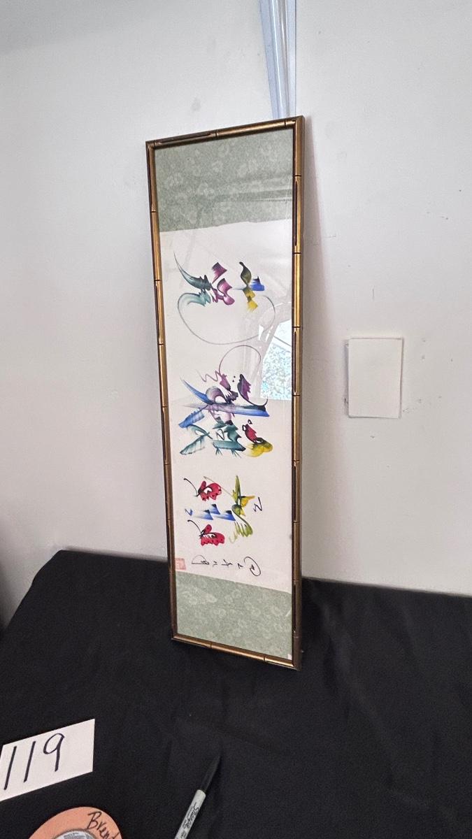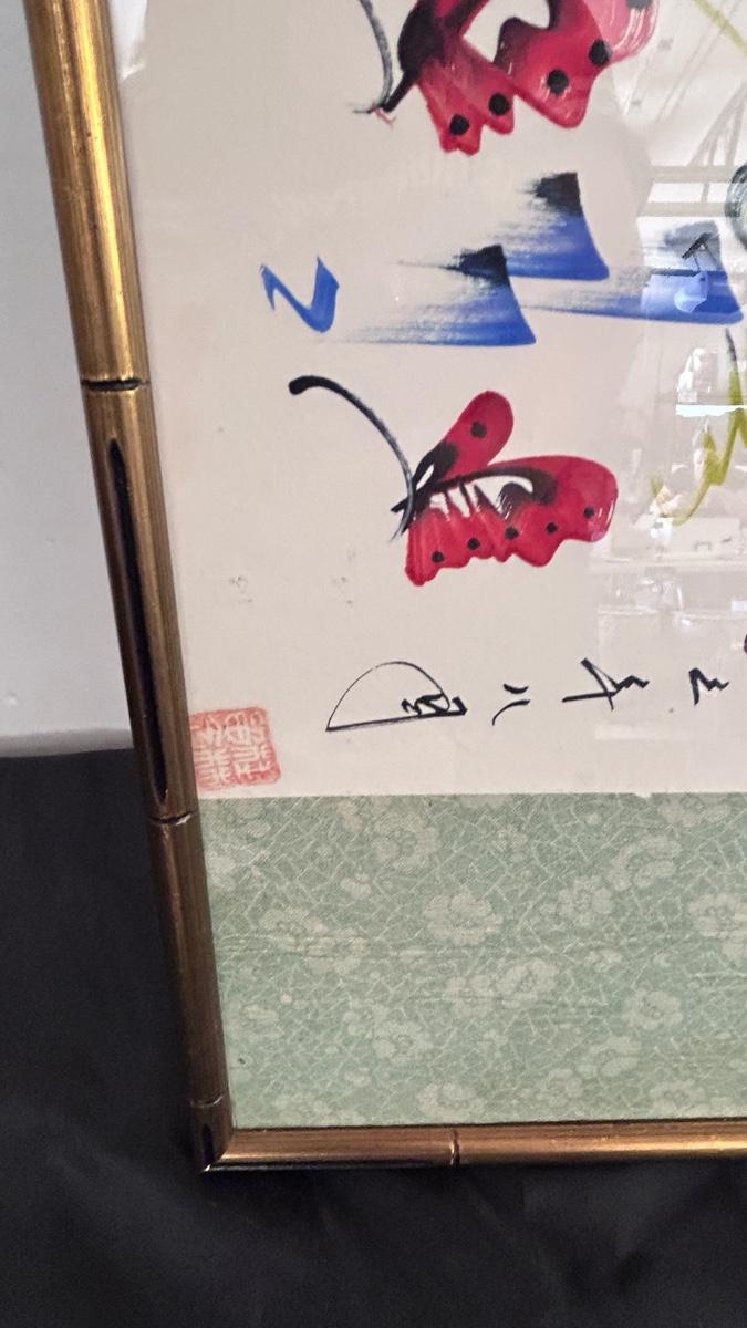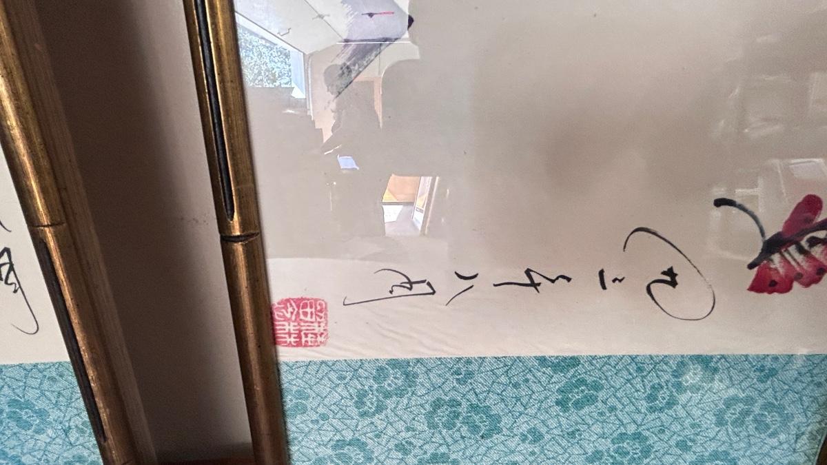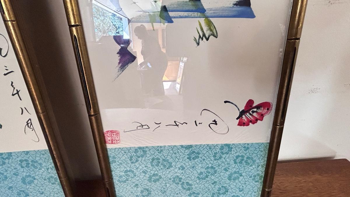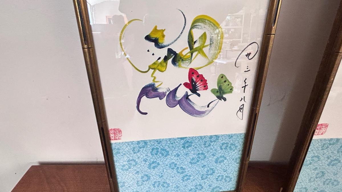 4 PIECE SET OF SIGNED ASIAN ARTWORK ( 4th in separate pic)