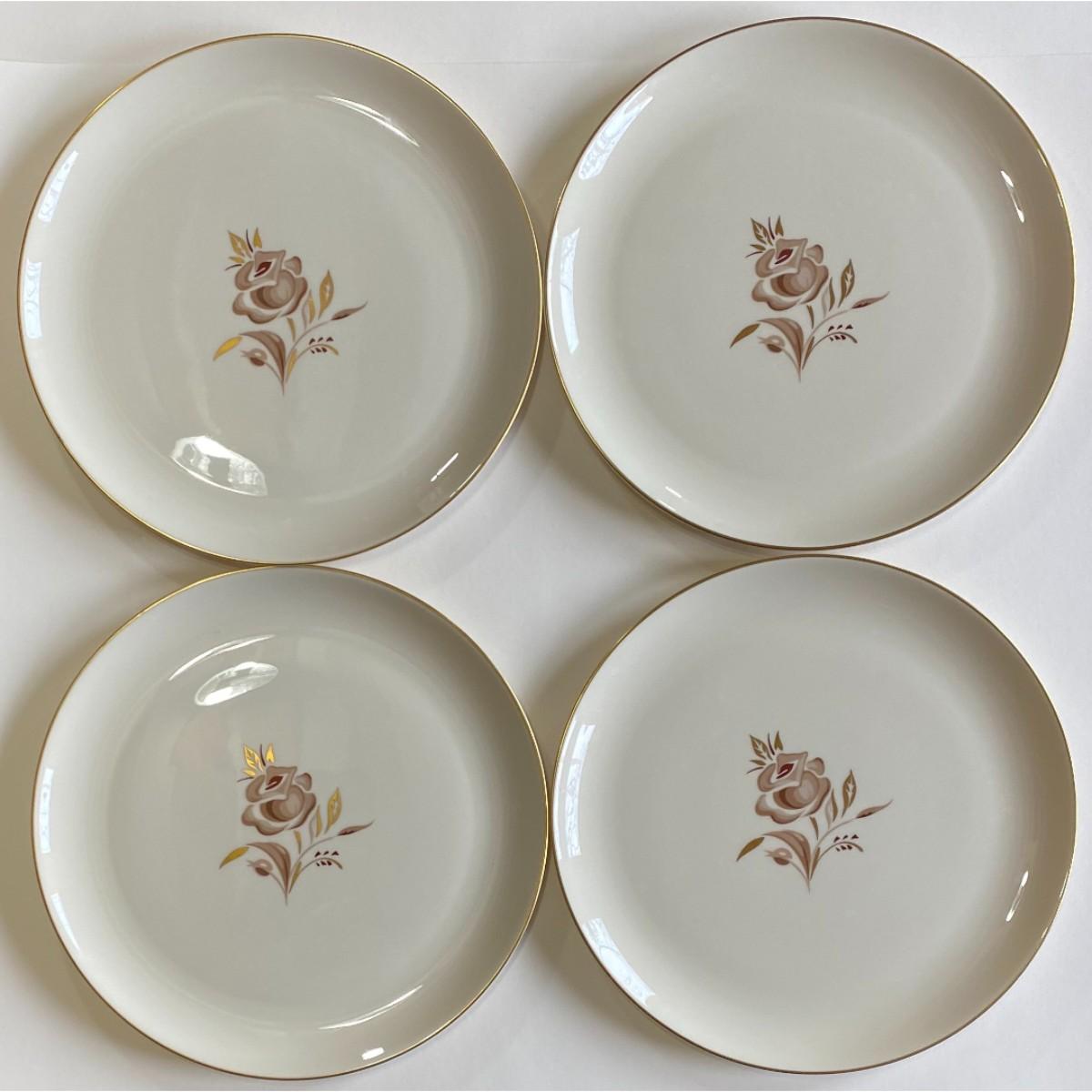 4 Pickard Brown Rose China Dinner Plates Flower Floral 1101 Made in U.S.A. - B