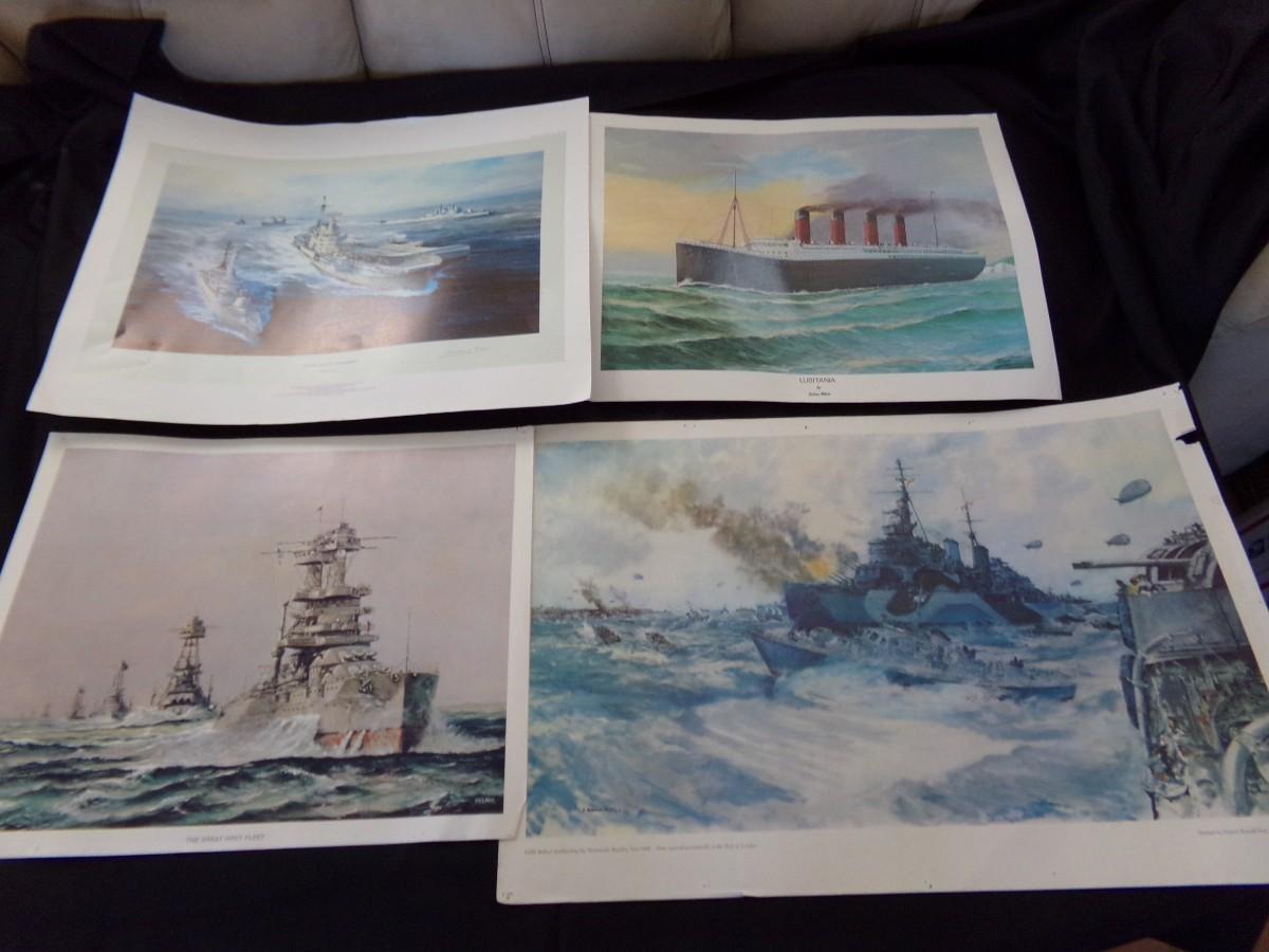 4 PICTURES; HMS BELFAST, LUSITANIA, SOUTH ATLANTIC TASK FORCE, GREAT GREY FLEET.