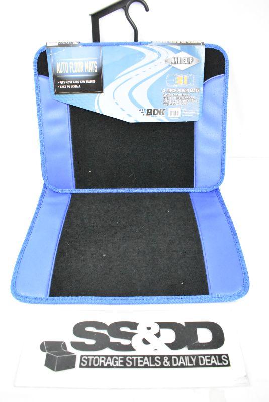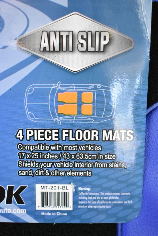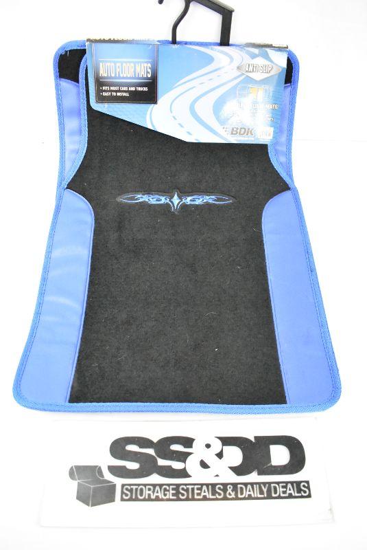 4 piece Auto Floor Mats, Blue & Black, Anti Slip, by BDK - New
