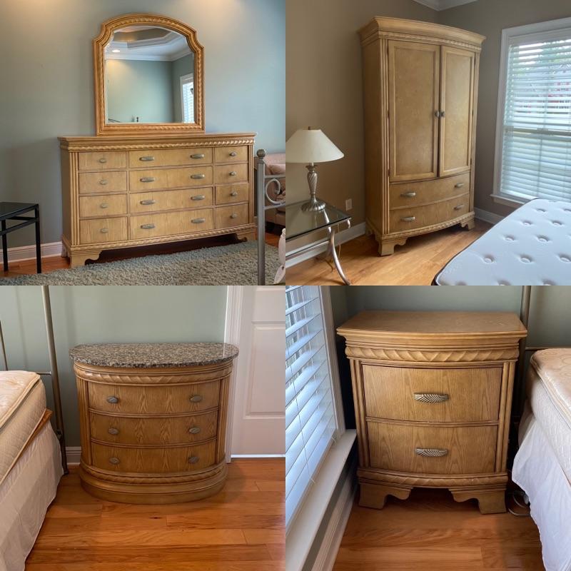 4 Piece Light Color Wood "Heavy" Bedroom Set - No bed