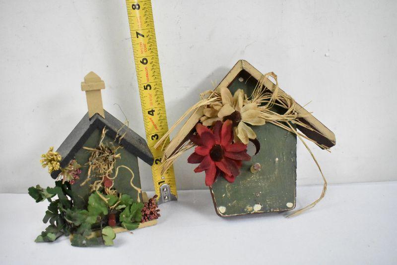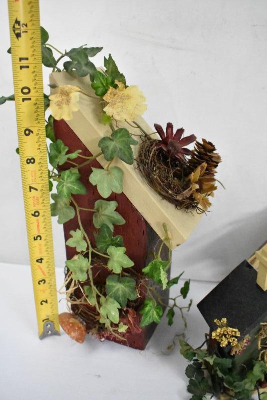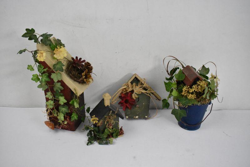 4 Piece Birdhouses & Faux Flowers Decor