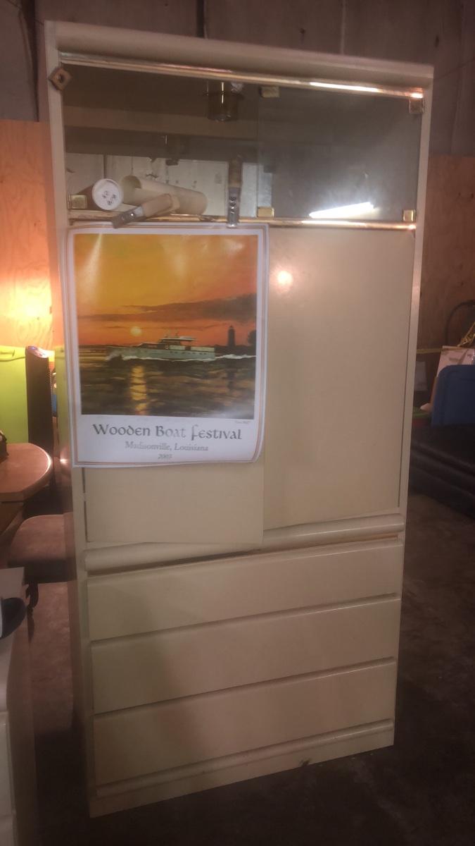 This is an awesome old broyhill set. Includes desk, 2 end tables and entertainment center or armoire. Missing one piece of glass on armoire.