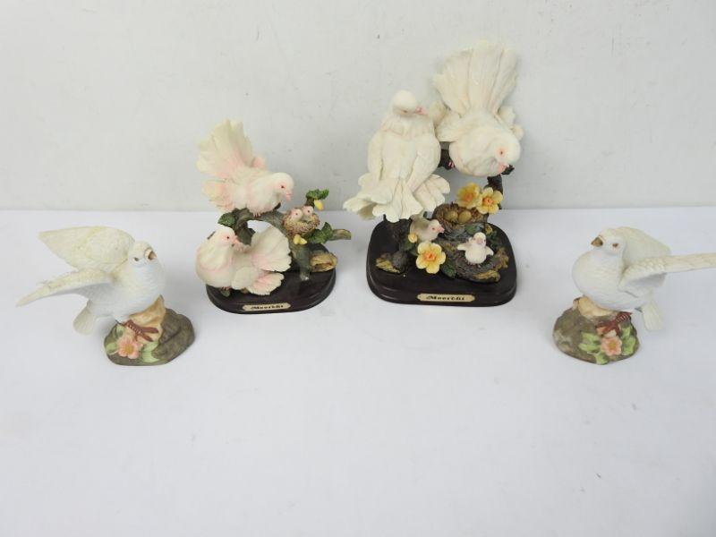 4 Piece Ceramic Doves Lot, 2 Pairs