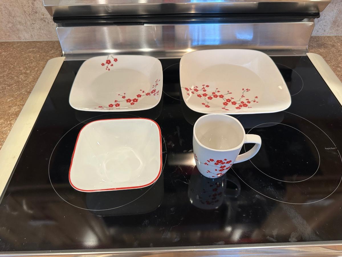 4 PIECE CORELLE DINNERWARE FOR 8 PEOPLE (ONLY 1 SETTING PHOTOGRAPHED)
