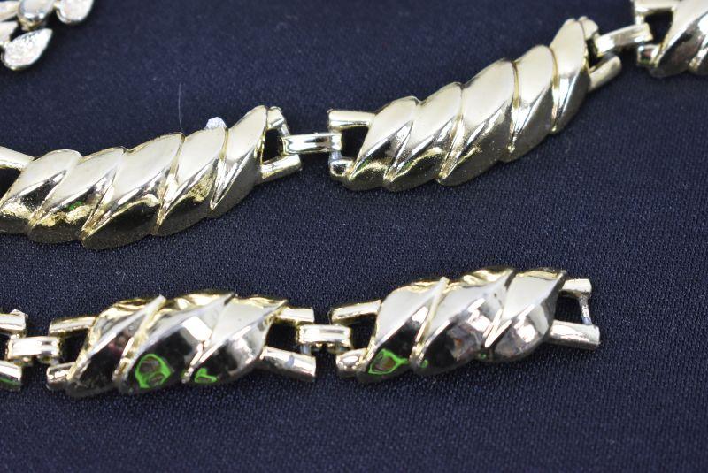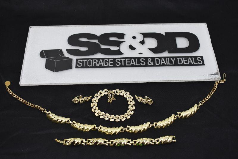 4 Piece Costume Jewelry: Necklace, Clip-On Earrings, 2 Bracelets, Gold Tones - Vintage "Coro"