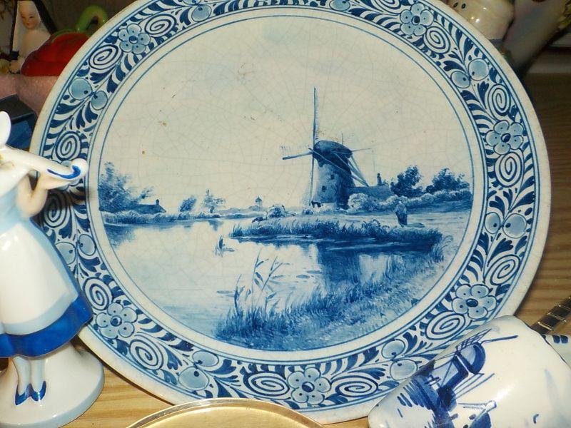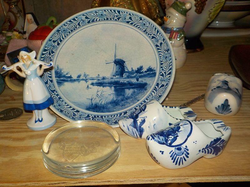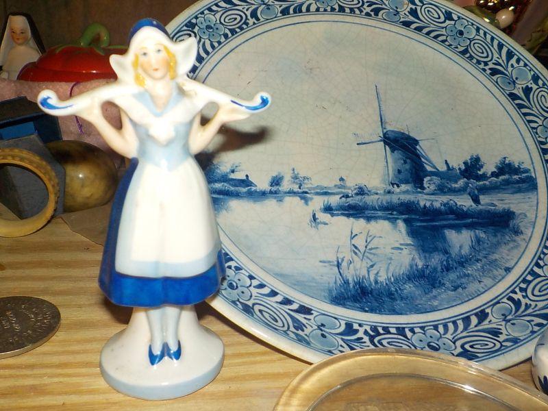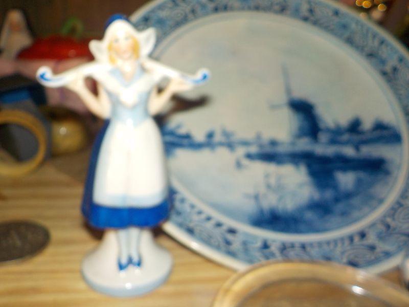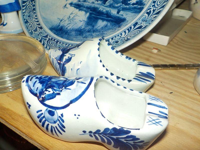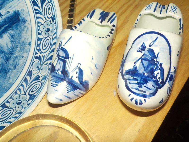 Vintage plate with art work, , signed and numbered, shoes (2) with hand painted figurine.