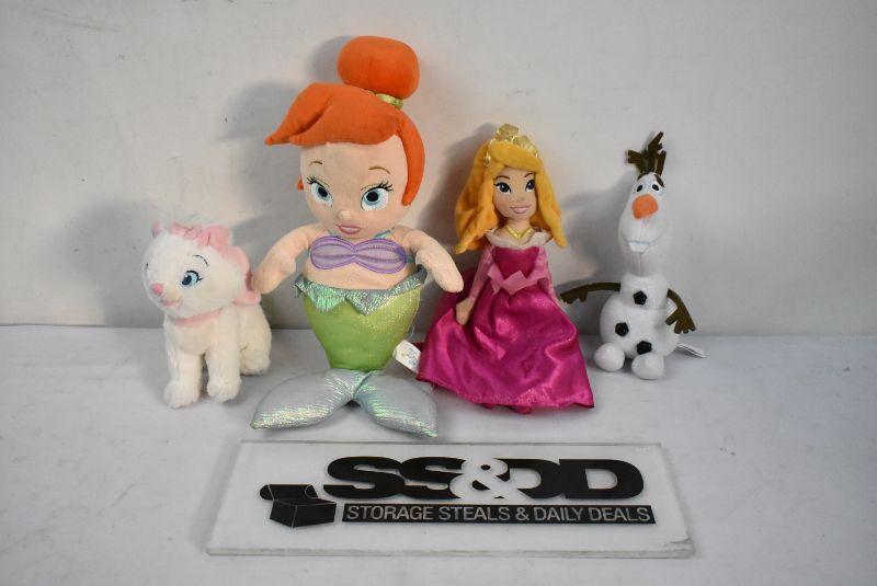 4 Piece Disney Stuffed Animal Toys: Kitty Marie, Ariel, Aurora, and Olaf