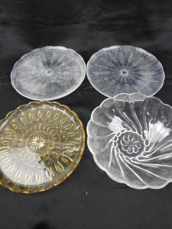 4 Piece Glass, Pair of 10" Platters, 10" Yellow Platter, and 9" Bowl
