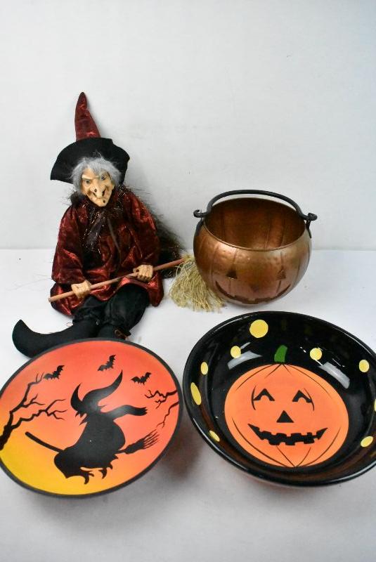 4 Piece Halloween Decor: 3 Bowls and 1 Witch