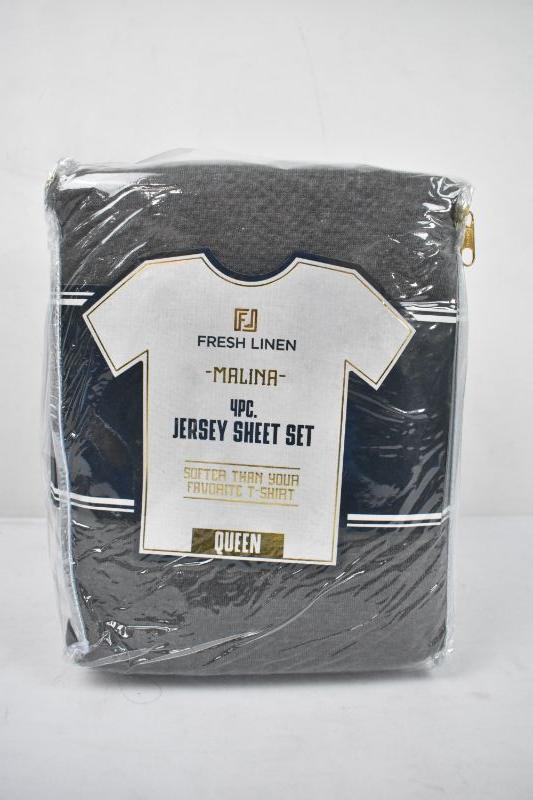 4 Piece Jersey Sheet Set, Queen Size, Dark Gray - New