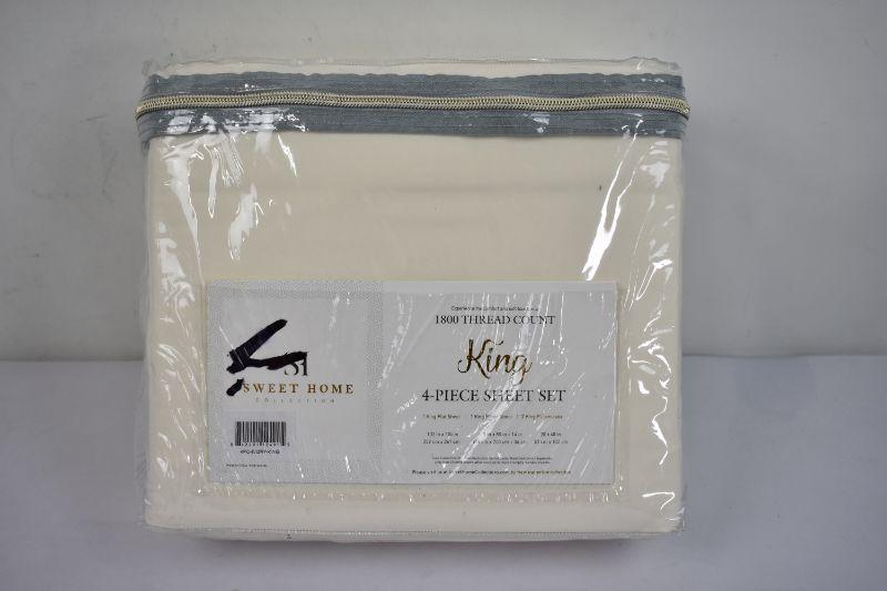 4 piece King Size Sheet Set, 1800 TC, Ivory - New