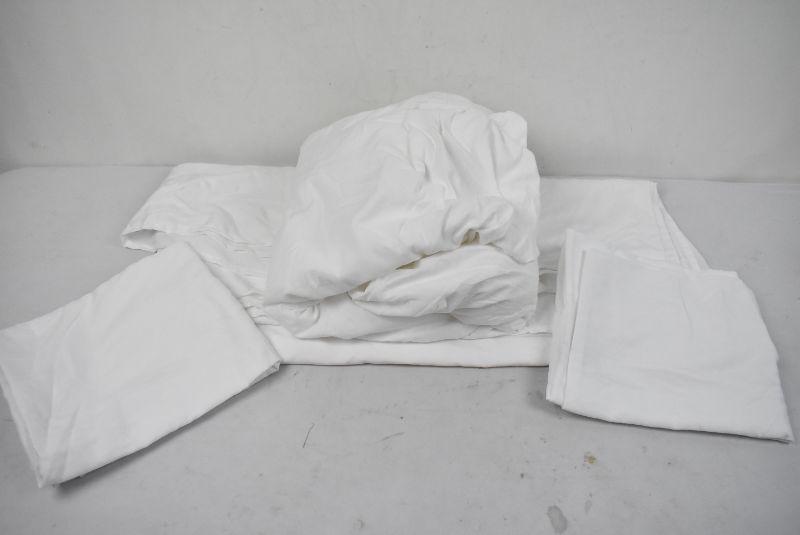 4 Piece King Size Sheet Set, White, Chic Brand: 2 Pillowcases, Fitted Sheet Flat Sheet - Appears New, No Packaging