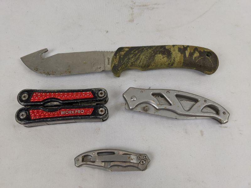 4 Piece Knife & Tool Set - 3 Knives & 1 Workpro Multi-Tool