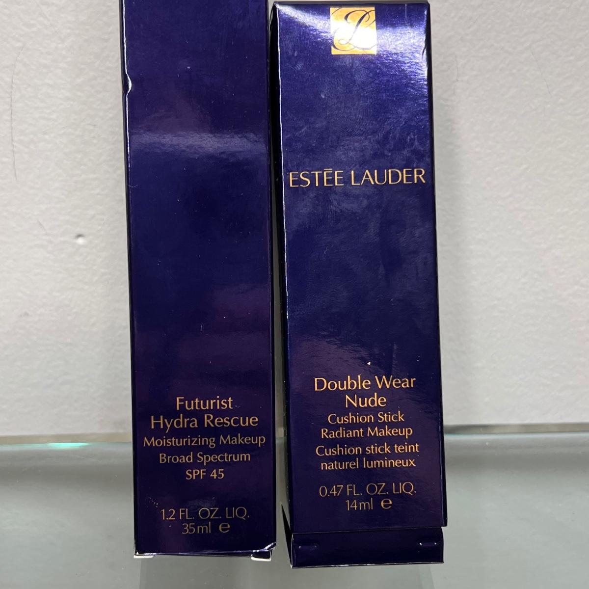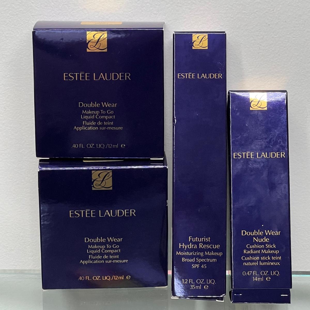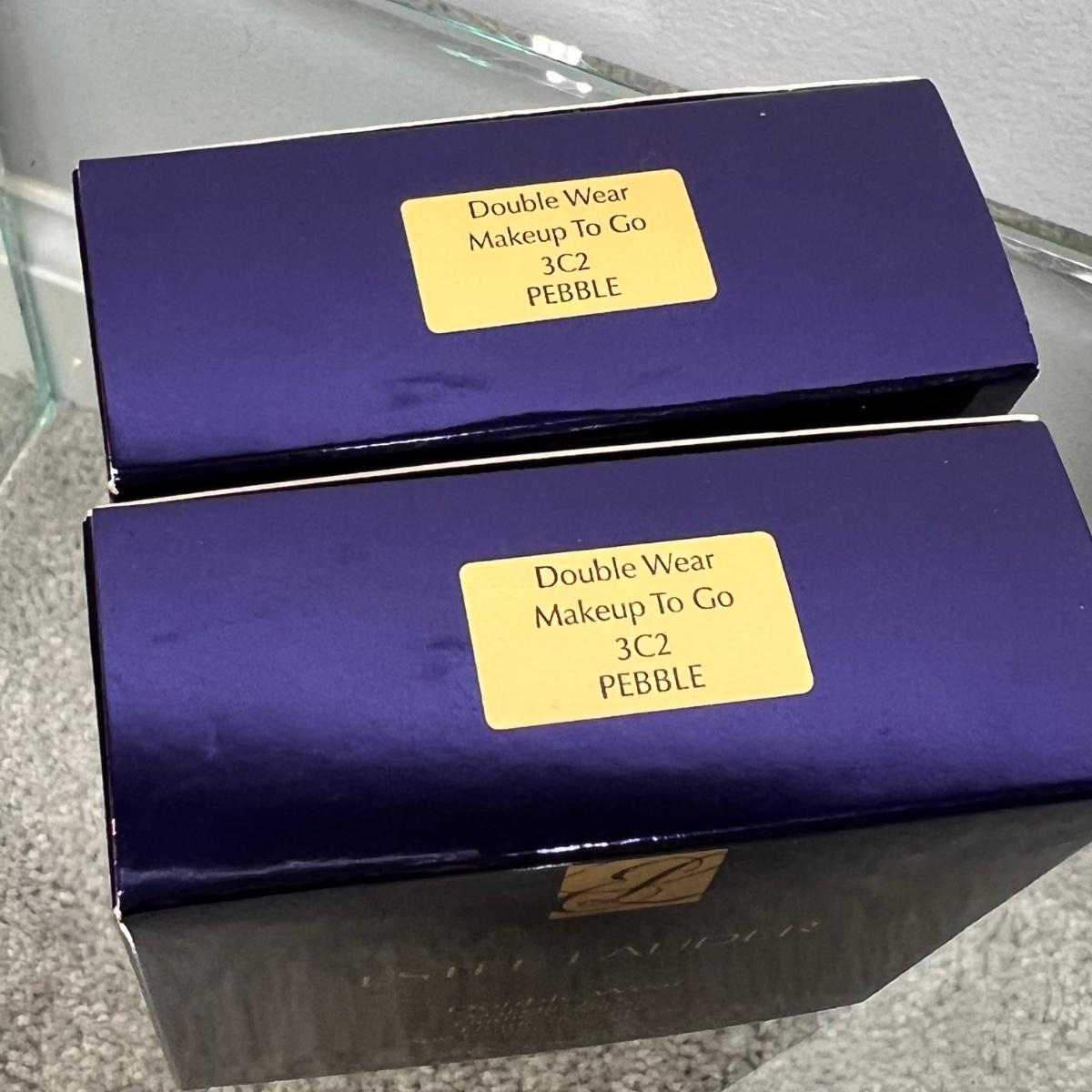 4 new in box Estée Lauder makeup - 2 compacts, 1 stick, 1 tube. All in color 3C2 pebble