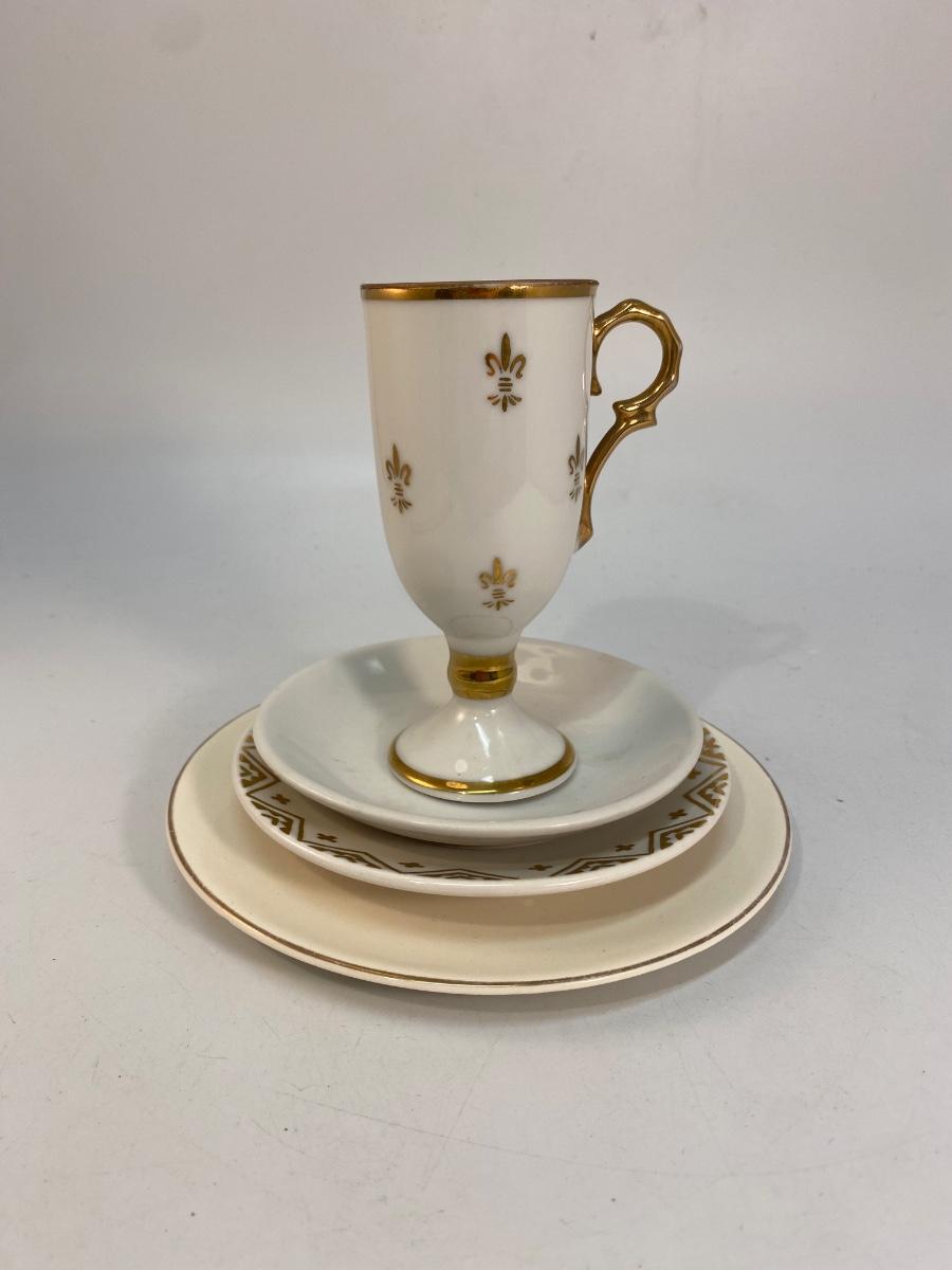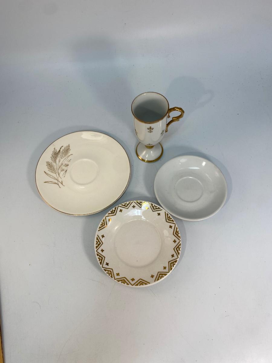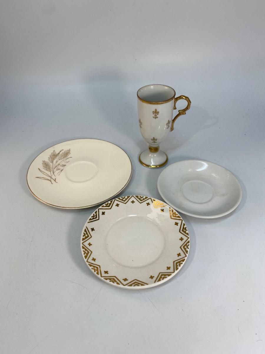 4 Piece Mixed Lot of China Dishware Saucers Teacup Mismatched White & Gold