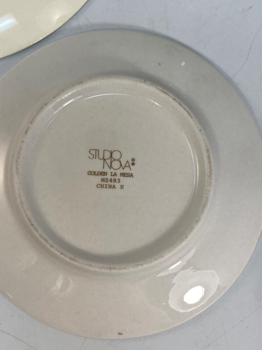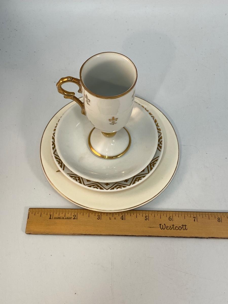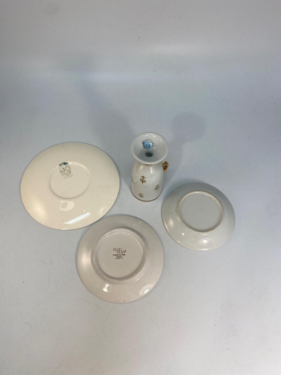 4 Piece Mixed Lot of China Dishware Saucers Teacup Mismatched White & Gold. Pieces are in good condition.