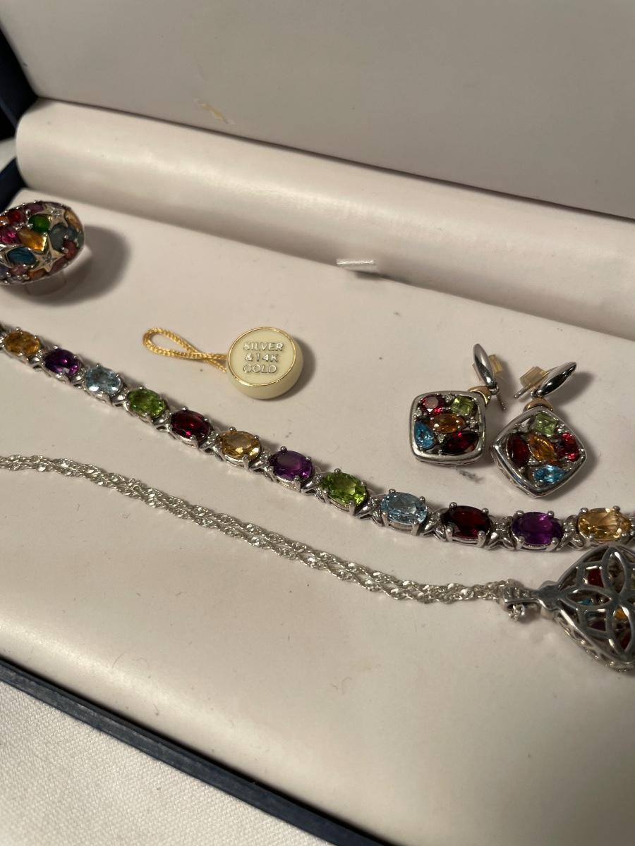 4 piece multi color stone set in 925 & 14k