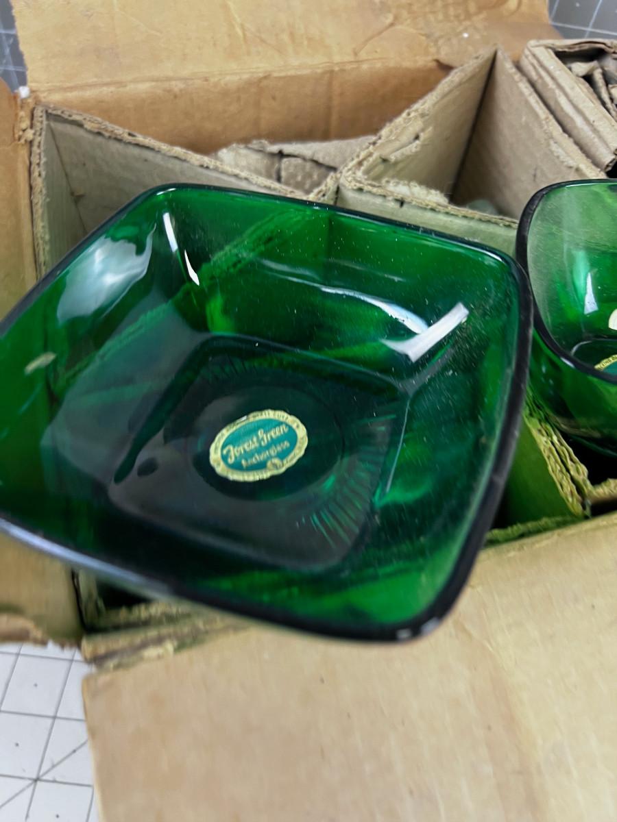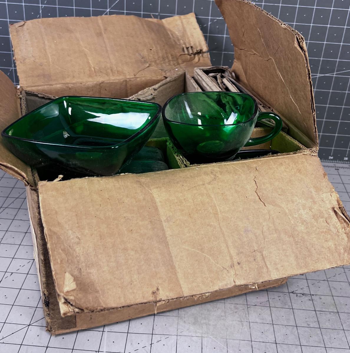 4 Piece Place Serving.16 Pieces Total GREEN Anchor Hocking NEW CHARM PATTERN