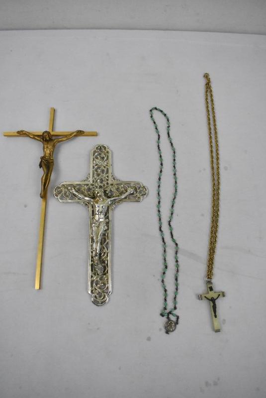 4 Piece Religious: 2 Necklaces & 2 Wall Crosses