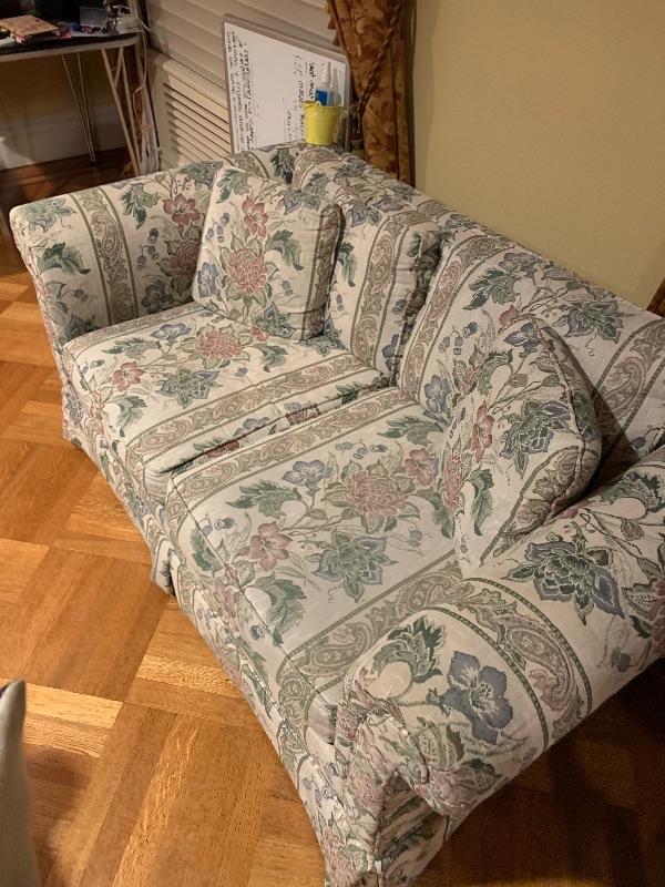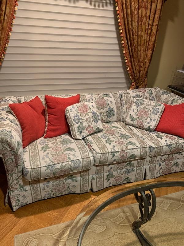 4 Piece Set: Sofa* Love Seat* Wingback Chair* Ottoman* Excellent Condition Very Comfortable : Includes Matching Fabric Decorative Pillows.