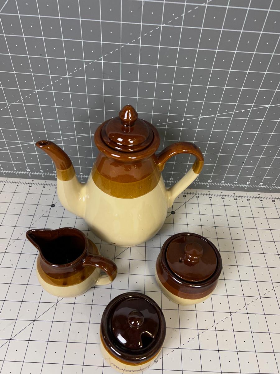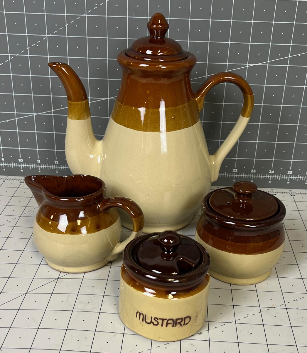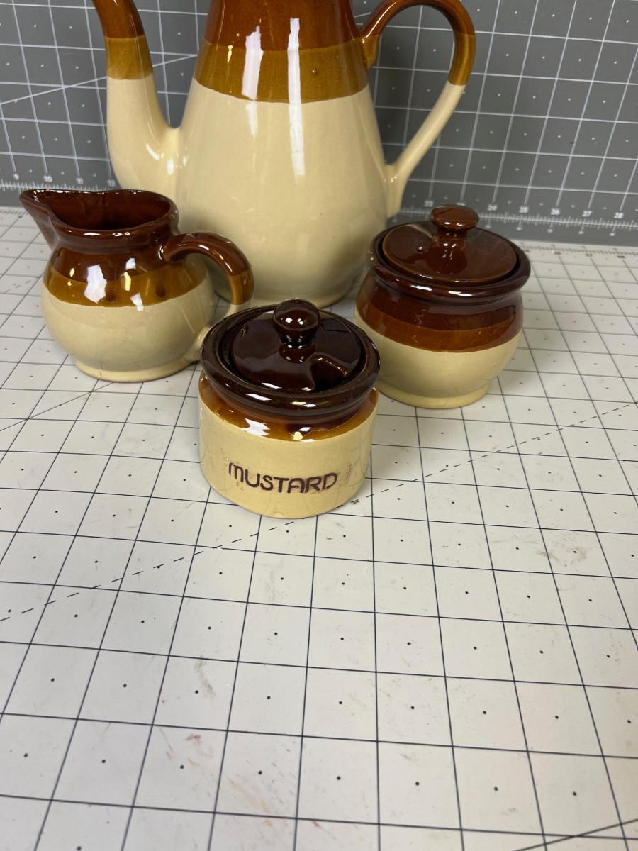 4 Piece Stoneware Set: Coffee Pot, Cream Sugar and Mustard Serving