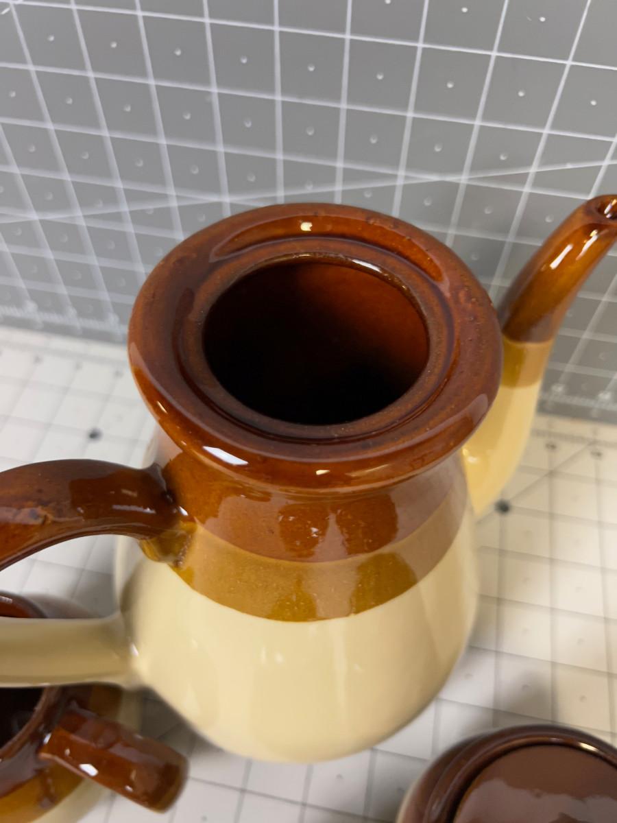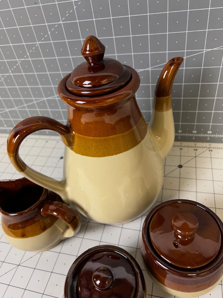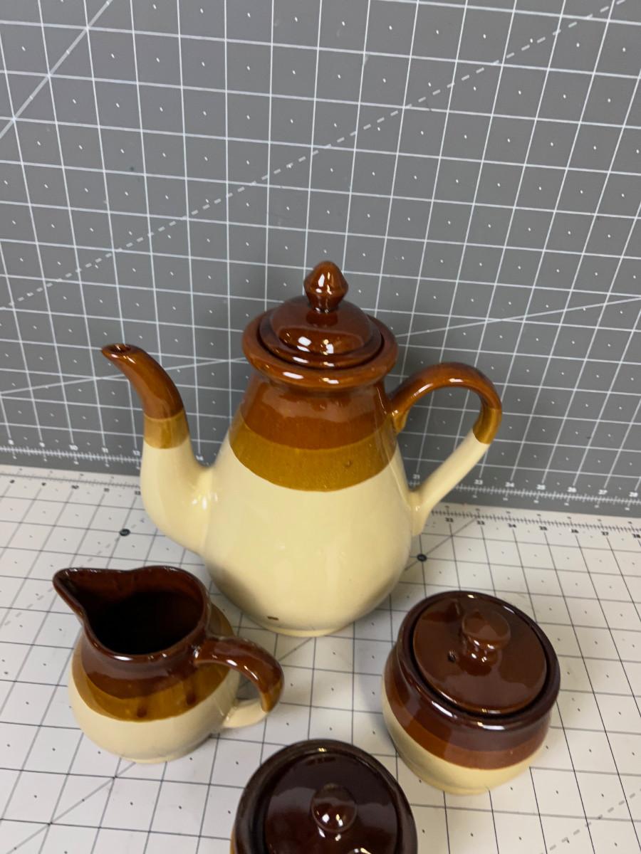 4 Piece Stoneware Set: Coffee Pot, Cream Sugar and Mustard Serving