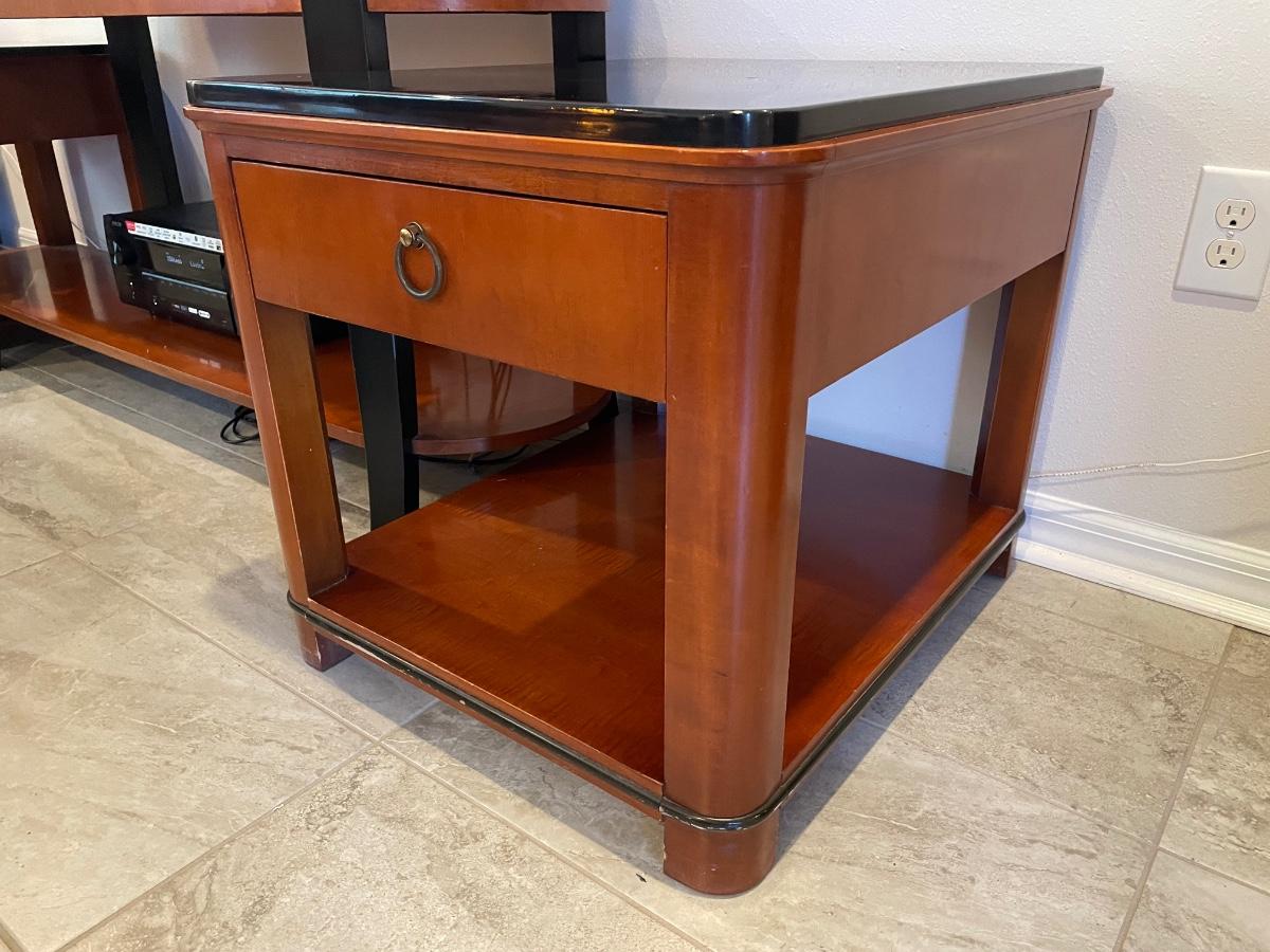 Coffee table does have a blemish in the veneer on the side of the table. Approx 2 inches long of missing veneer. Other than that, no other blemishes noticed on any other pieces.