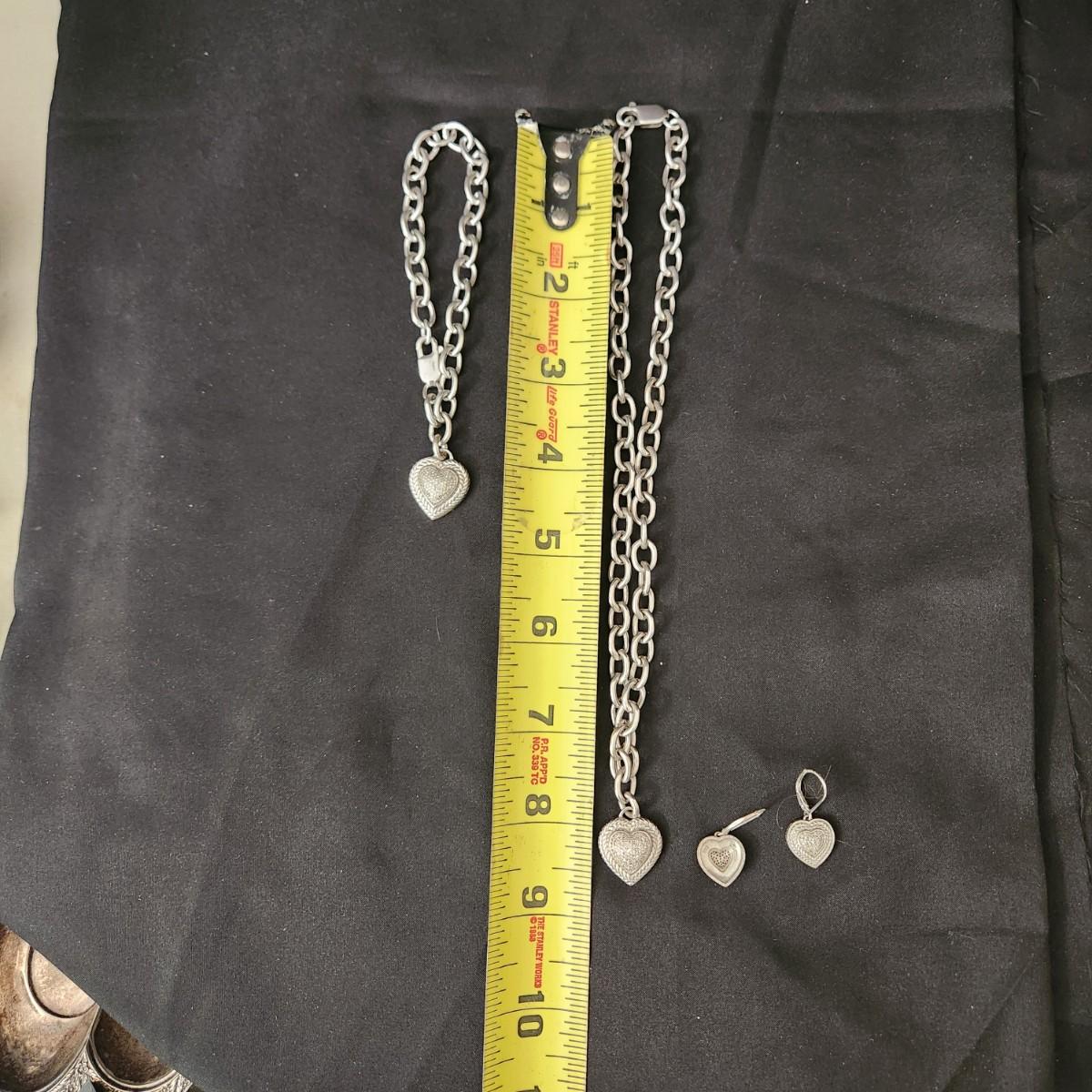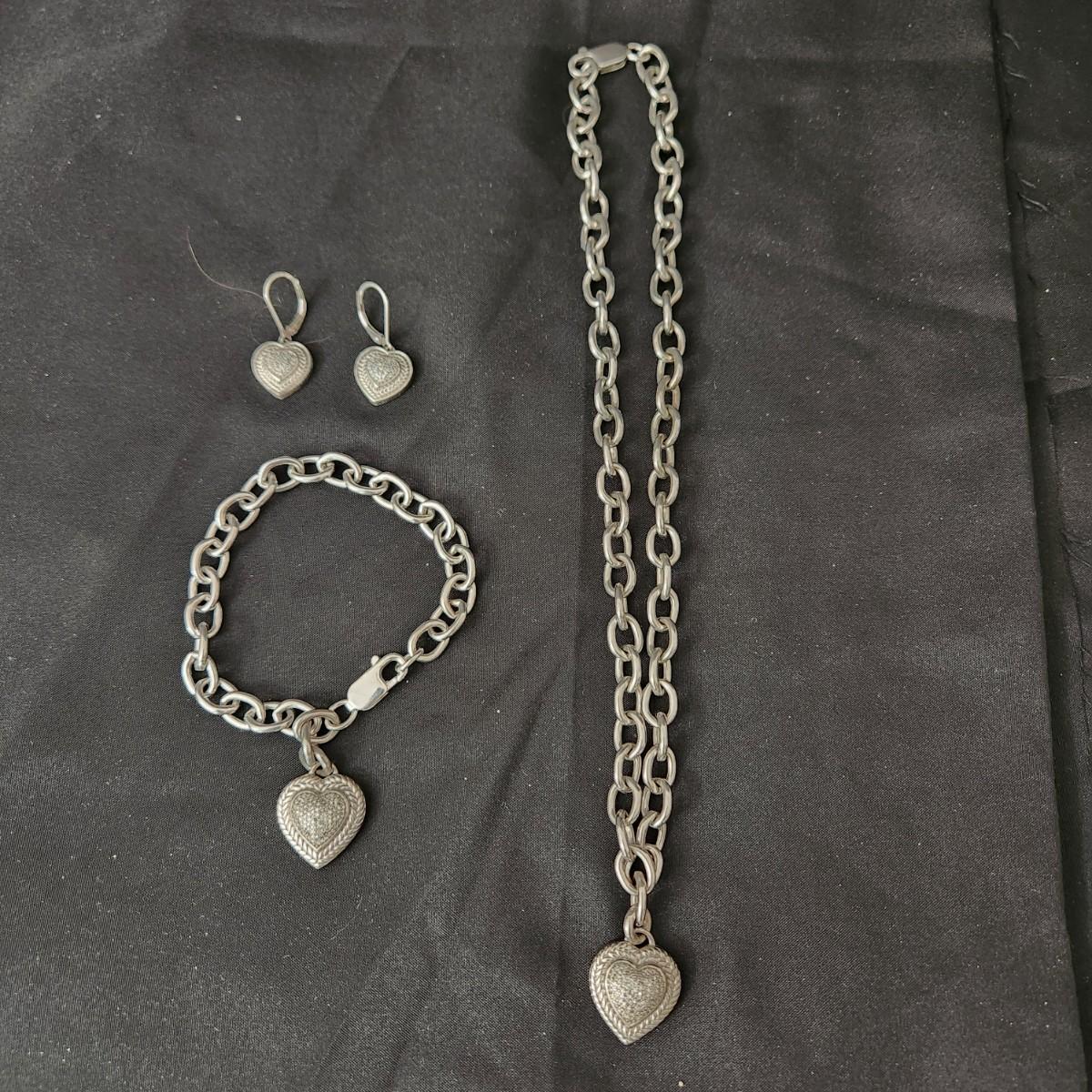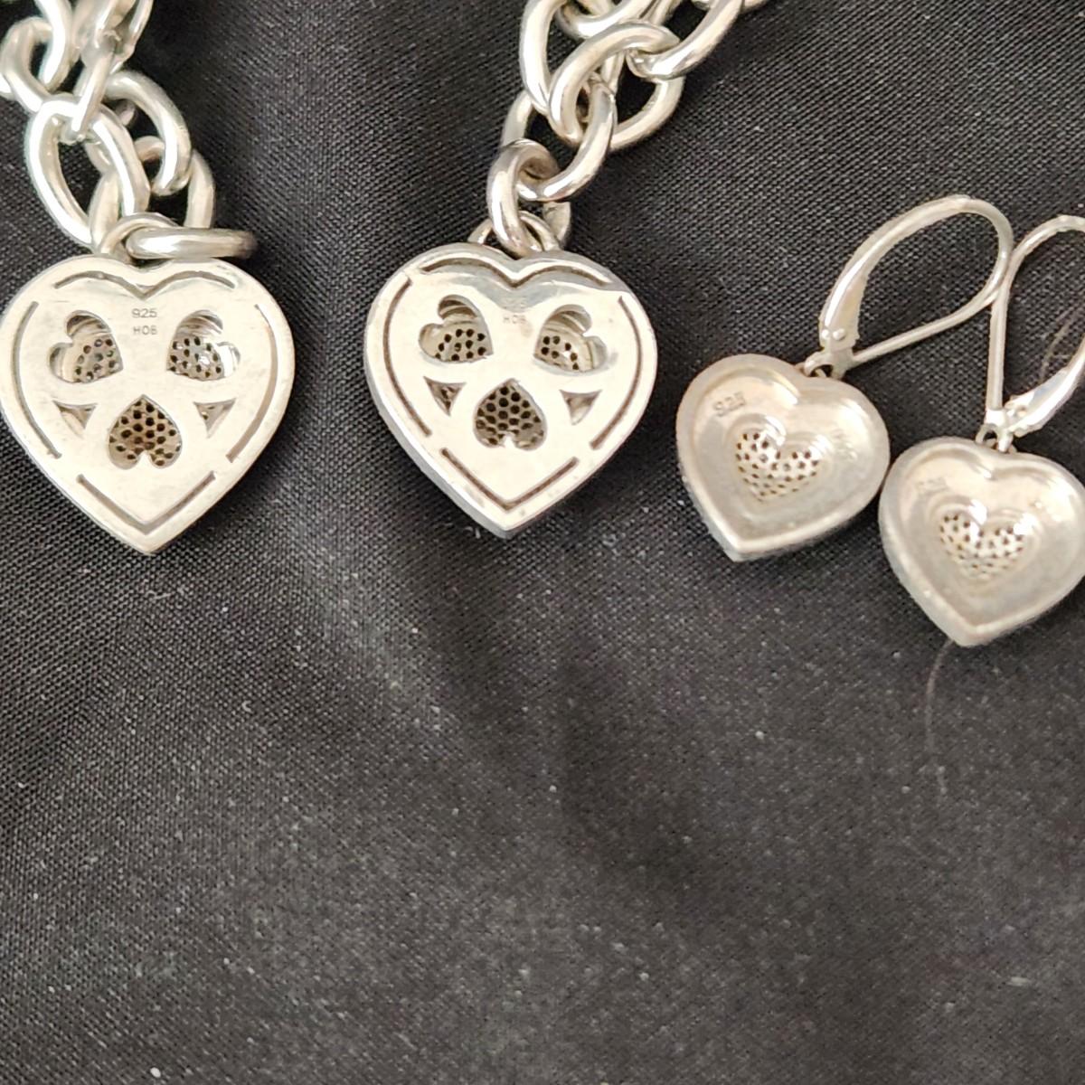 4 Pieces Hob Sterling Silver Hearts Earrings Necklace & Bracelet 71 gram