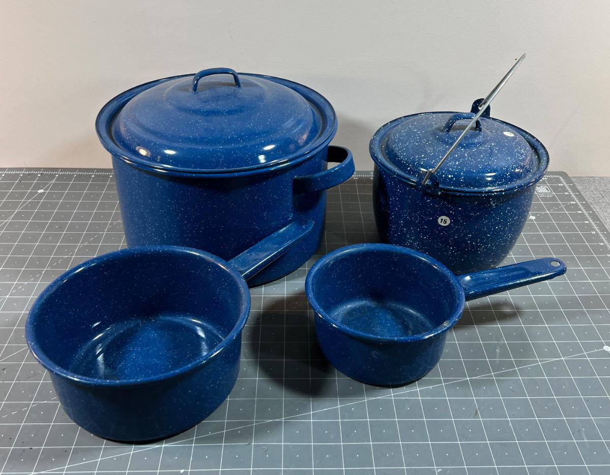 4 Pieces of Graniteware Pot & Pans