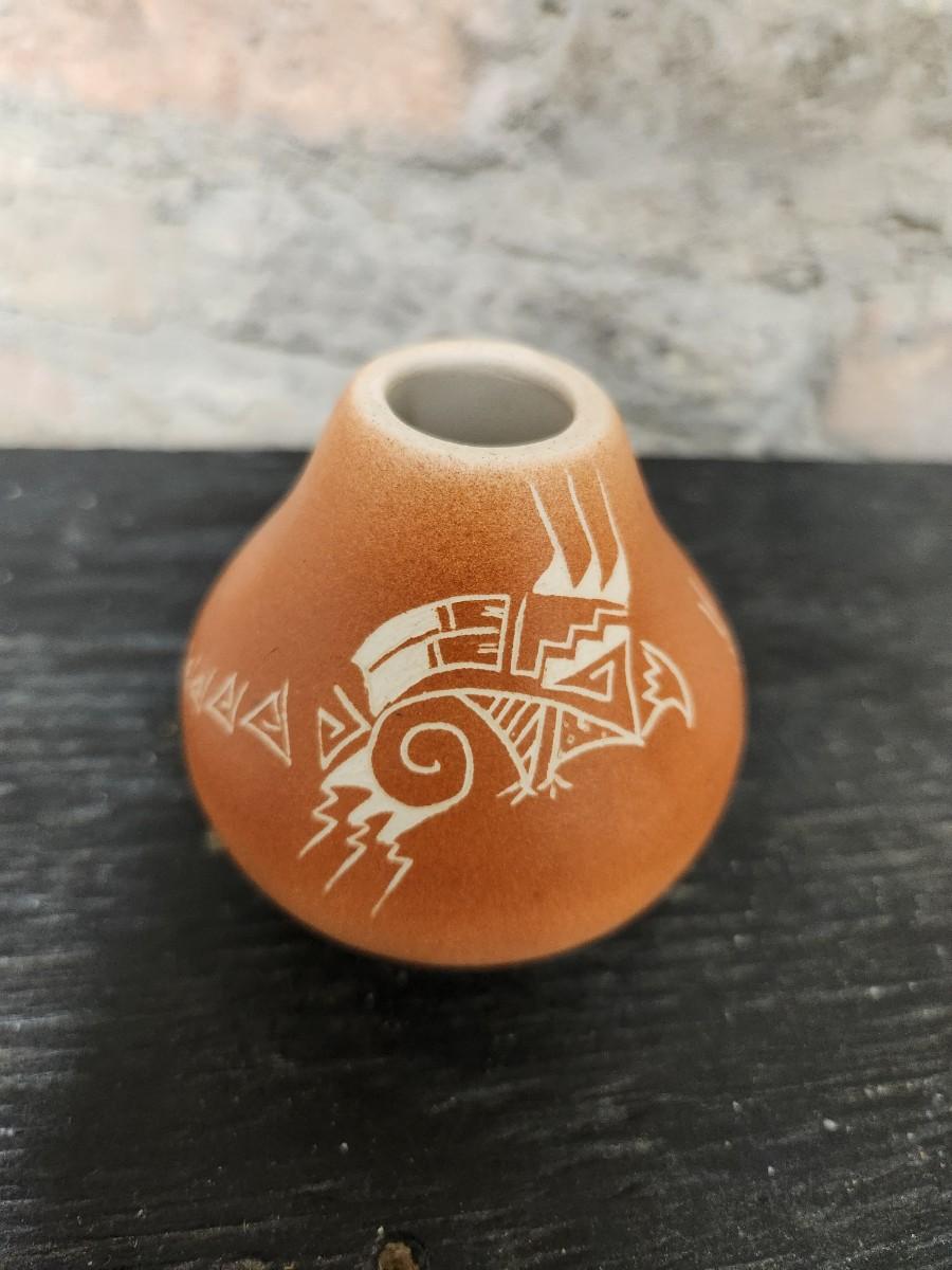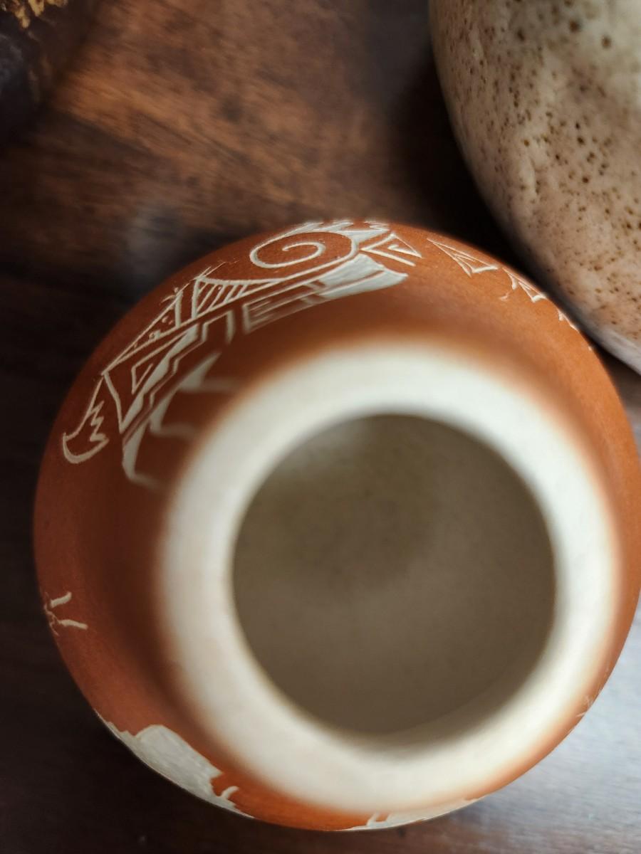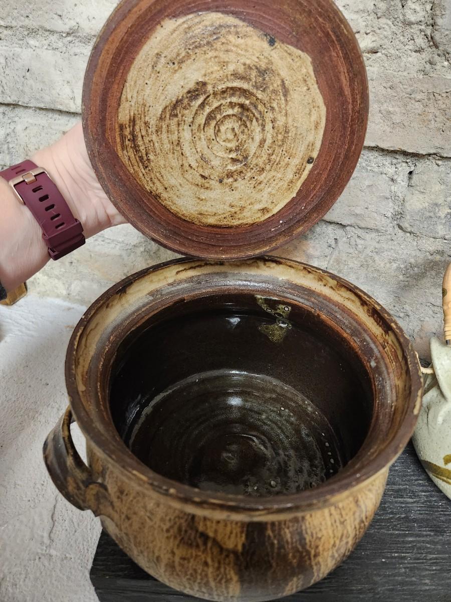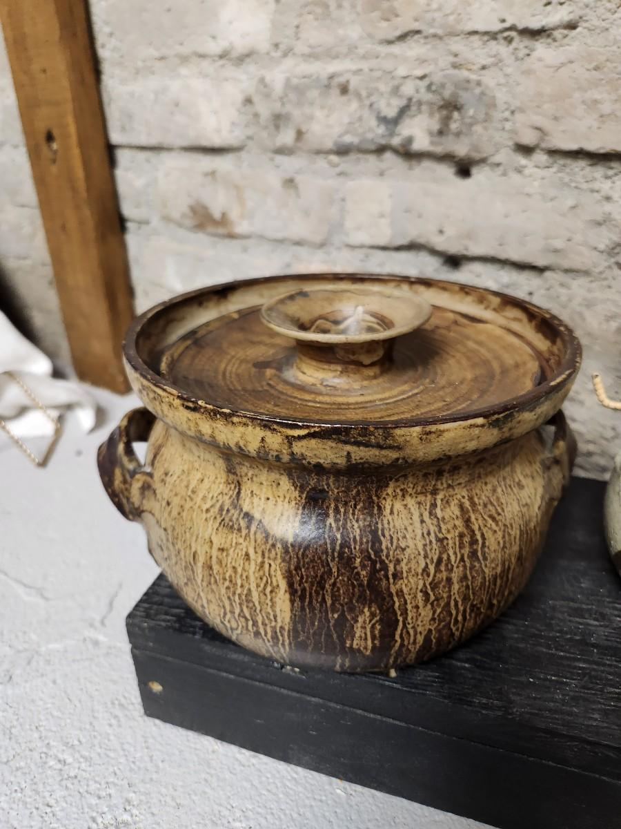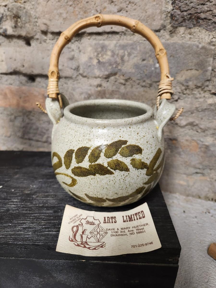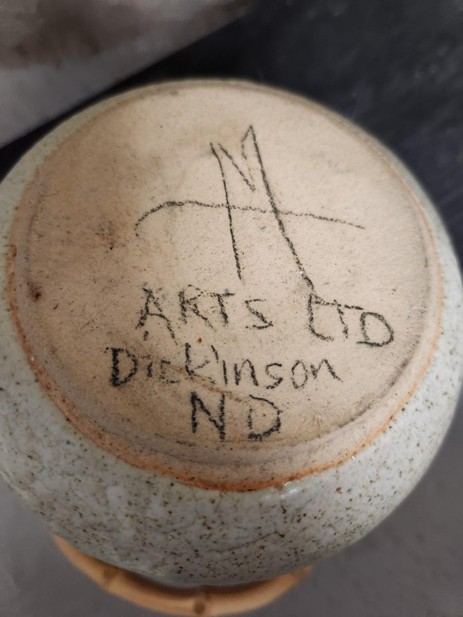 Awesome studio made casserole. Arts Ltd out of Dickinson, ND handled pot. Cute little indigenous pot and a slate tile with metal gecko attached wall hanging