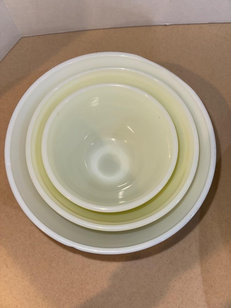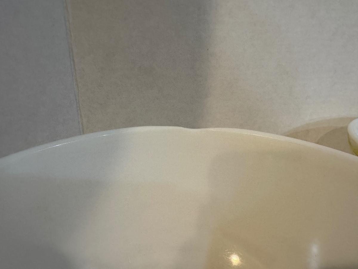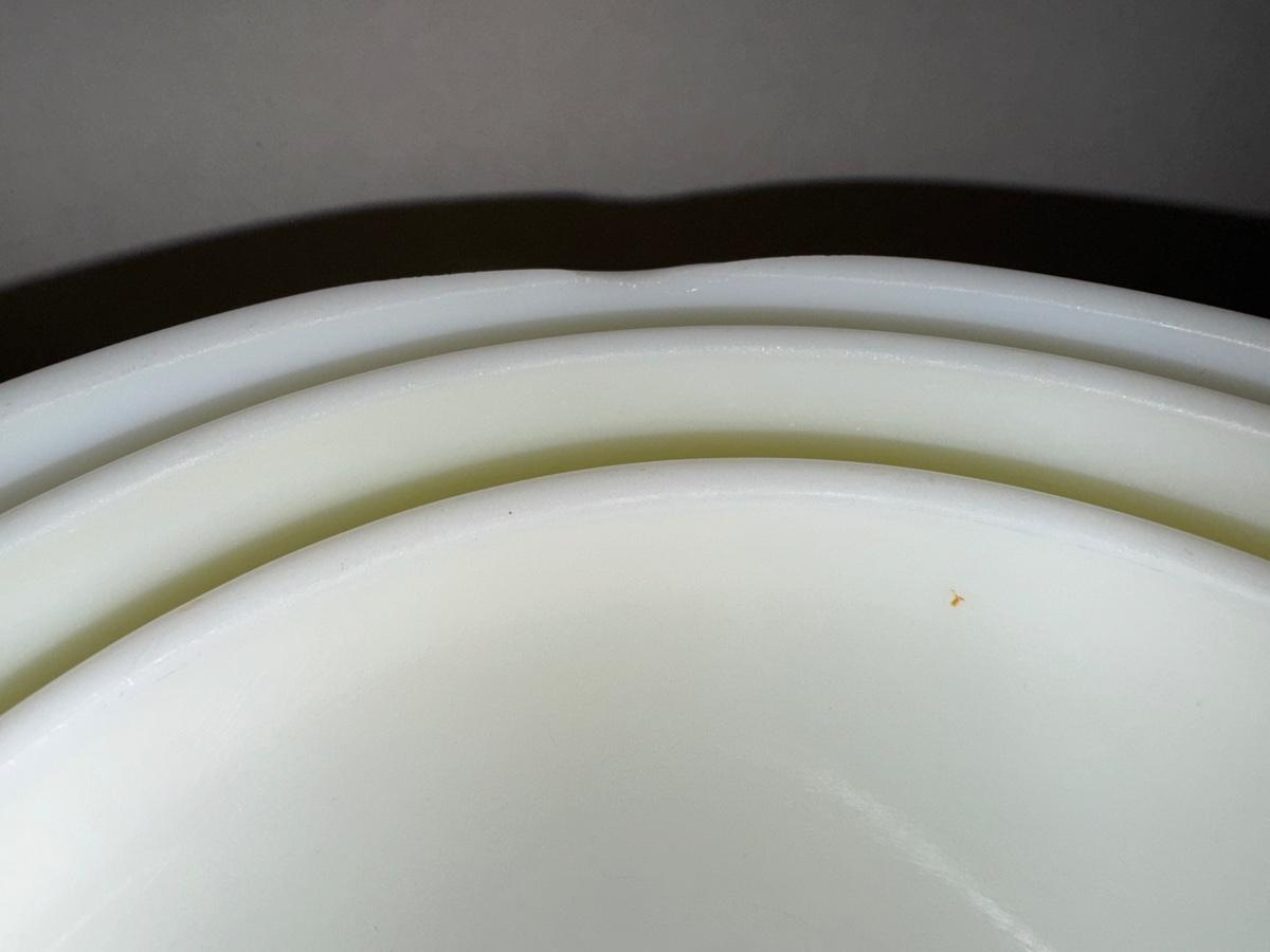 Largest bowl has a dip in the rim. It seems to have been chipped then sanded and smoothed.