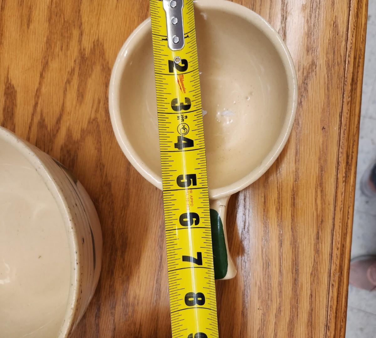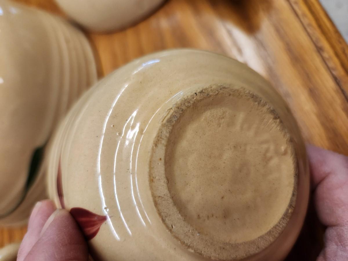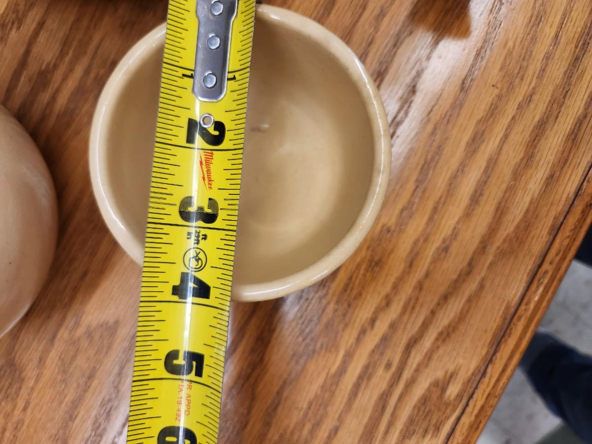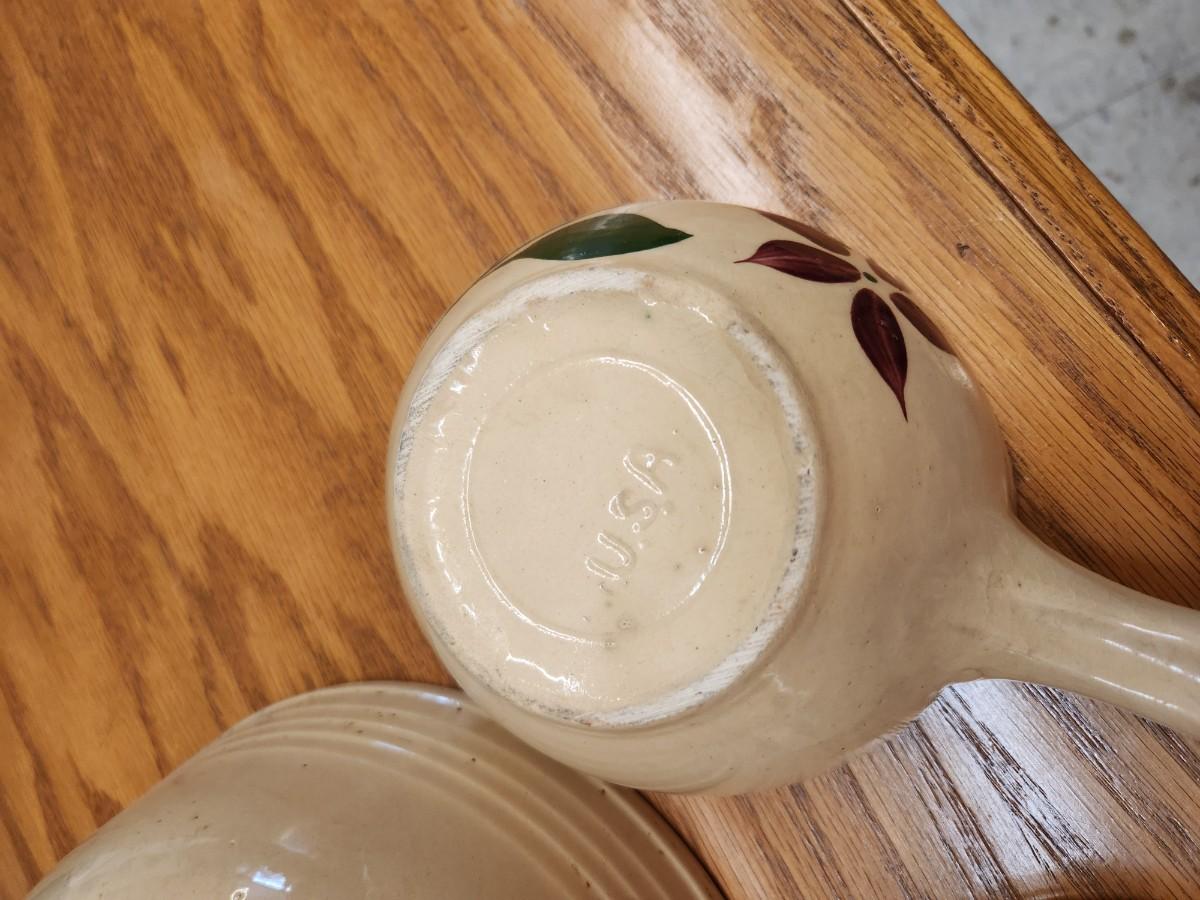 Small lug, milk pitcher, mixing bowl and ramekin.