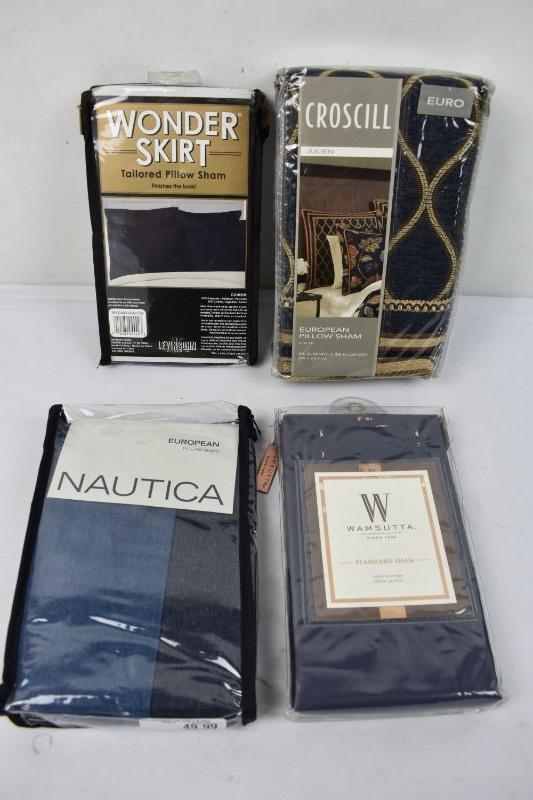 4 Pillow Shams in Navy & Blue - 2 Standard & 2 Euro Size - New
