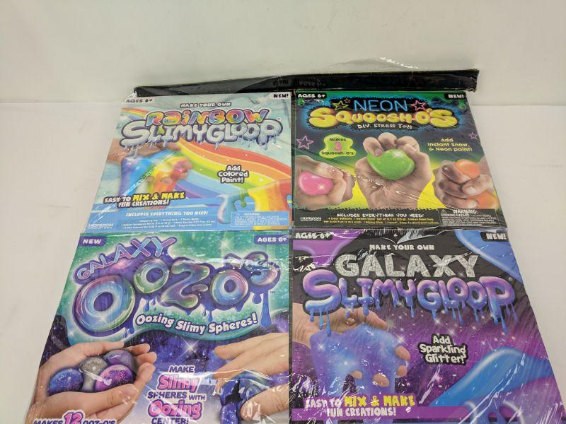 4 Pk Make Your Own Goop, Rainbow Gloop/Neon Squoosh-o's/Galaxy Ooz-o's/Galaxy Gloop - New