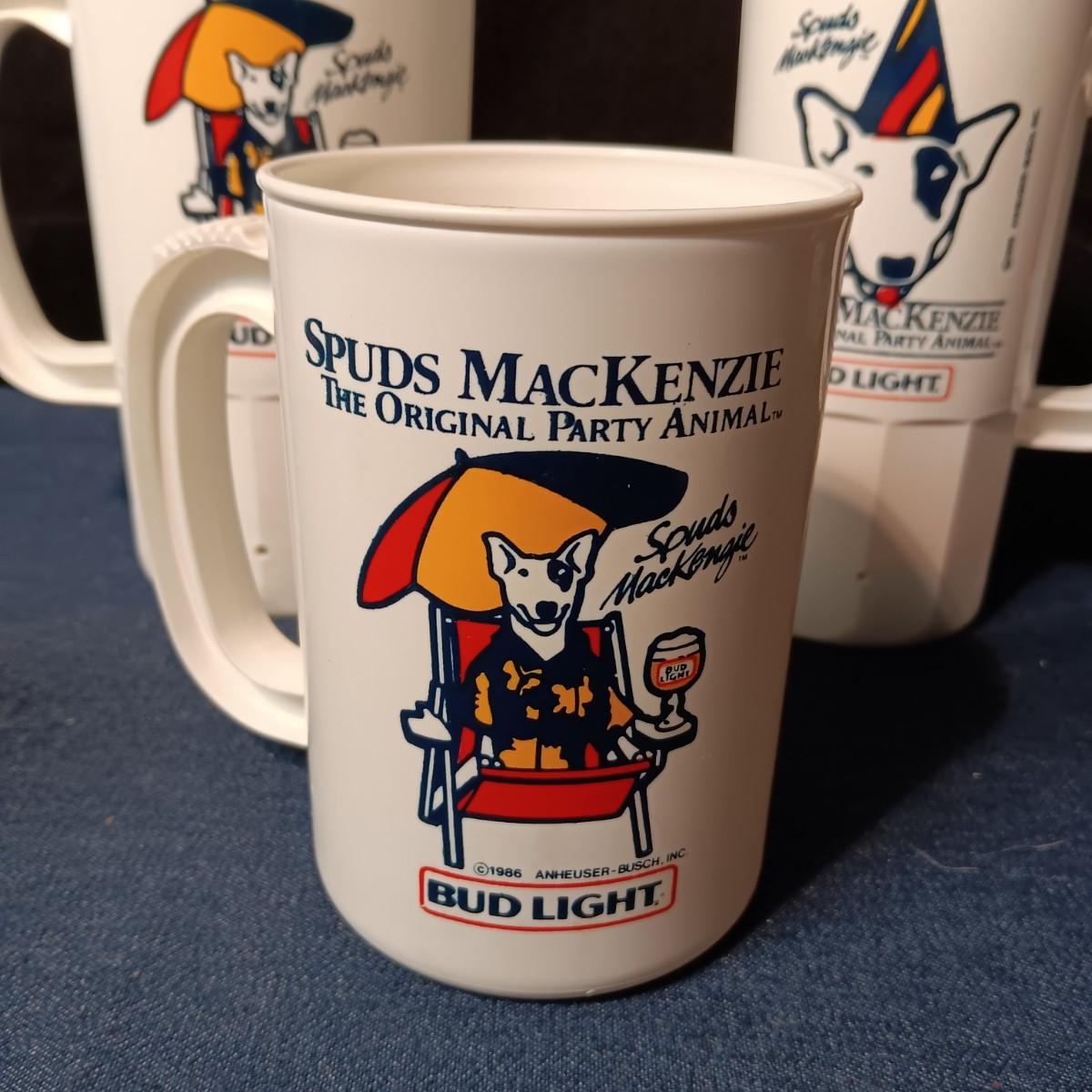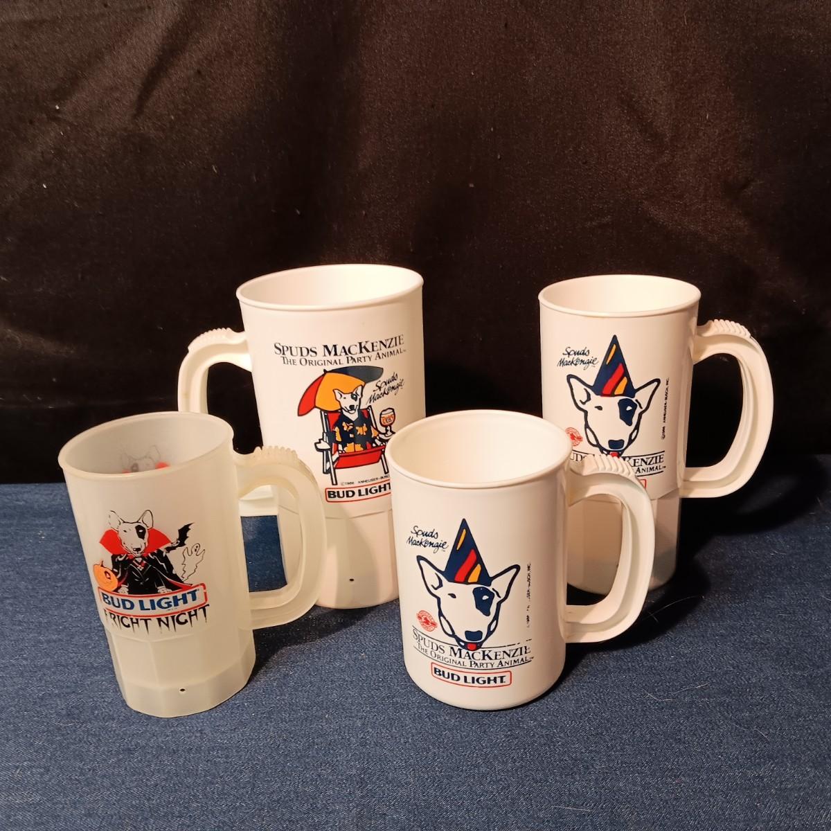 4 PLASTIC (1 GLOW IN THE DARK) SPUDS MACKENZIE CUPS