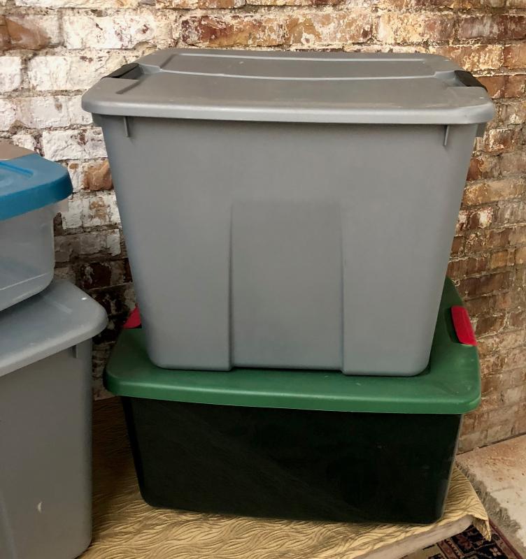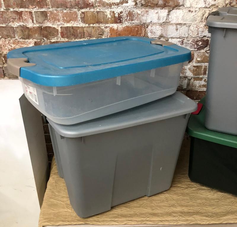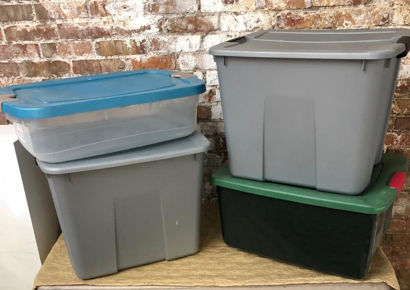 Good condition on these four plastic storage bin lot...as shown..with lids..